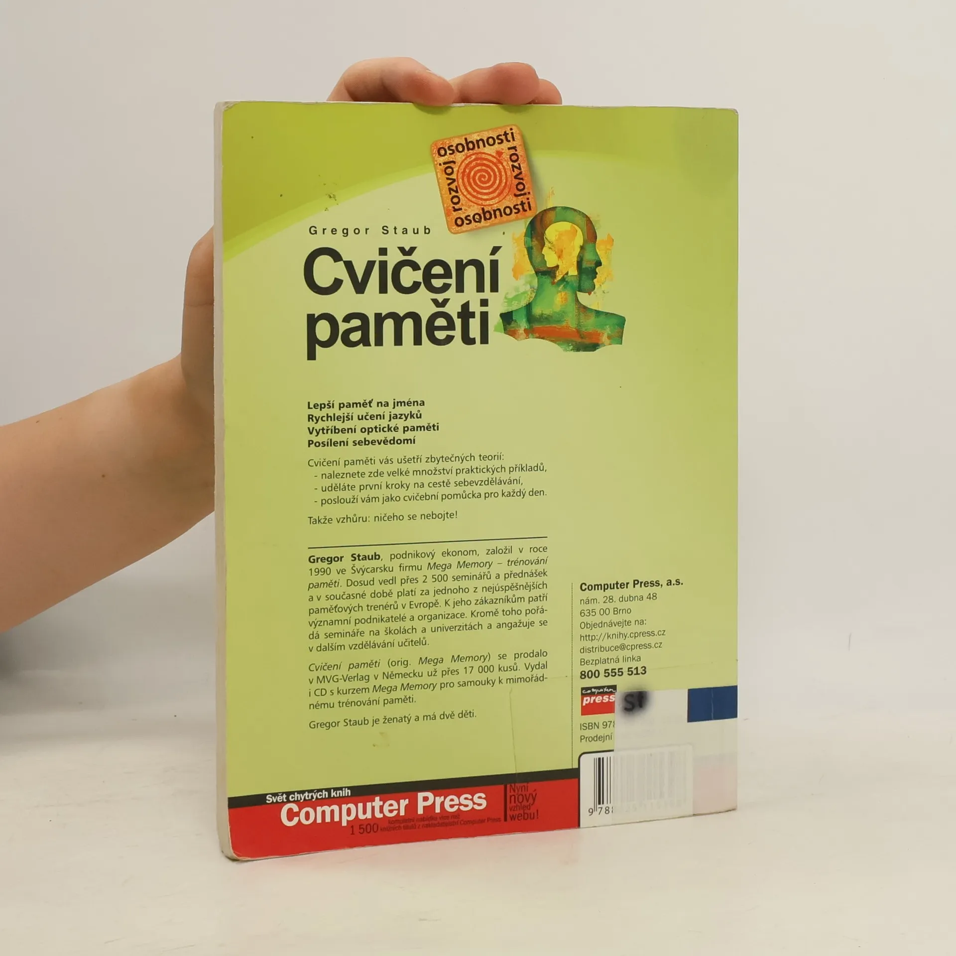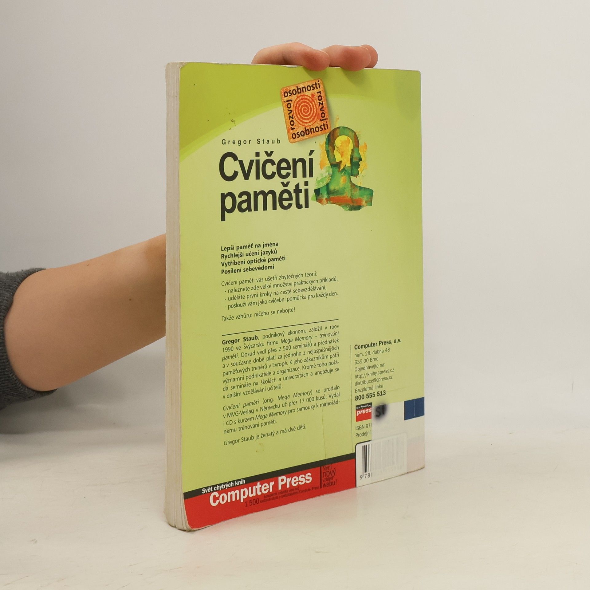 - Lepší paměť na jména - Rychlejší učení jazyků - Vytříbení optické paměti - Posílení sebevědomí Cvičení paměti vás ušetří zbytečných teorií: - naleznete zde velké množství praktických příkladů, - uděláte první kroky na cestě sebevzdělávání, - poslouží vám jako cvičební pomůcka pro každý den. Takže vzhůru: ničeho se nebojte!