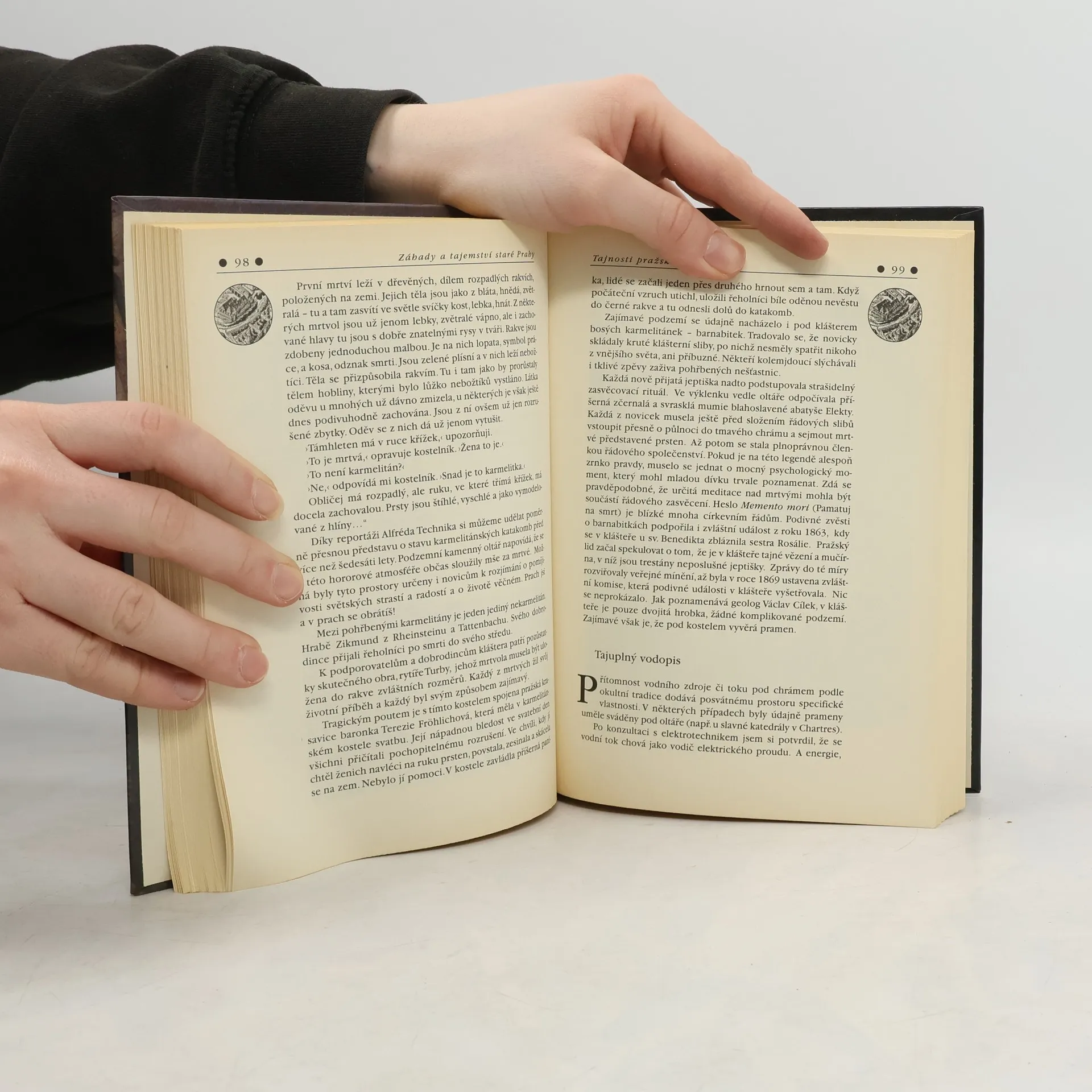 Autor se zabývá historií Prahy, místy a památkami, které mají souvislost se záhadami a magií. V jednotlivých kapitolách popisuje zajímavosti a záhady spojené se založením Prahy, názvem města, pověstmi, památkami Starého Města, Karlova mostu, Staroměstské mostecké věže. V dalších kapitolách se věnuje záhadám Židovského Města, pražského podzemí nebo Petřína. Zde jsou zmíněny i památky na síly temné. Zmiňuje symboly svobodných zednářů a rosenkruciánů. Zajímá jej také magie, která mohla ovlivnit průběh bitvy na Bílé hoře a připomíná letohrádek Hvězda. V kapitole "Tajemství katedrálního pokladu" autor popisuje zbroj svatého Václava nebo součásti pokladu patřící biskupu Vojtěchovi. V knize jsou uvedeny i záhady týkající se osobnosti sv. Jana Nepomuckého. Samostatná kapitola je věnována i pražské tajemné zvířeně a strašidlům. Text je doplněn fotografiemi, obrázky, půdorysy a mapkou. Kniha je zdrojem informací o pražské minulosti a památkách. Tematicky navazuje na knihy Praha magická a esoterická.