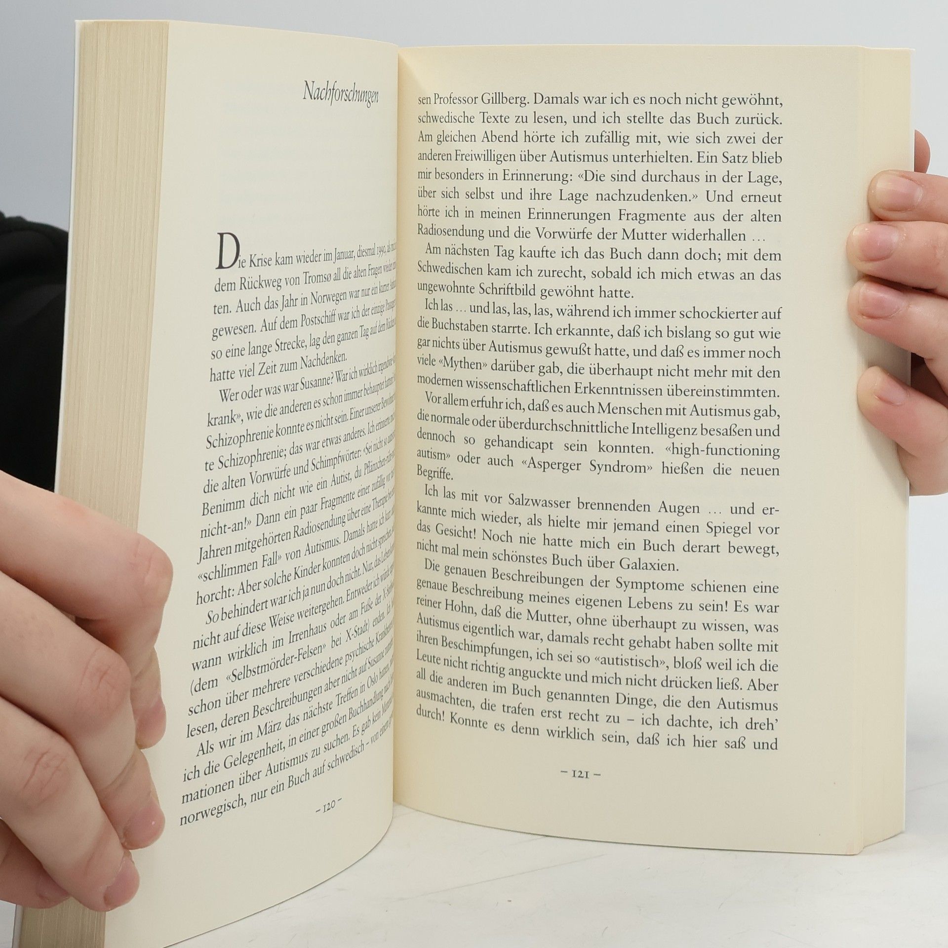 Das Buch über Susanne ist ein ungeheuer wichtiges Dokument. Es ist direkt von einem Menschen geschrieben worden, der von Kindheit an Autismus gehabt hat. Es ist nicht redigiert, nicht bearbeitet. Susanne gibt auf eine begreiflichere Weise als irgendein Lehrbuch einen tiefen Einblick dahinein, wie es ist, Autismus zu haben. (Christopher Gillberg, Professor für Kinder- und Jugendpsychiatrie, Göteborg ) Anfang März des Jahres 1992, noch keine 26 Jahre alt, machte sich eine junge Frau auf die Reise nach Schweden, in die renommierte Annedalsklinik von Göteborg. Am Morgen des 2. März war sie mit Christopher Gillberg, dem dortigen Professor für Kinder- und Jugendpsychiatrie, verabredet – und dieser Tag im März veränderte ihr Leben: Susanne, es ist nun faktisch klar, du hast eindeutig Autismus. Jener kurze Satz fasste ihr ganzes 25-jähriges Leben-im-Chaos zusammen und war gleichsam ein Befreiungsschlag, der die Einsamkeit des Nicht-Wissens durchbrach.