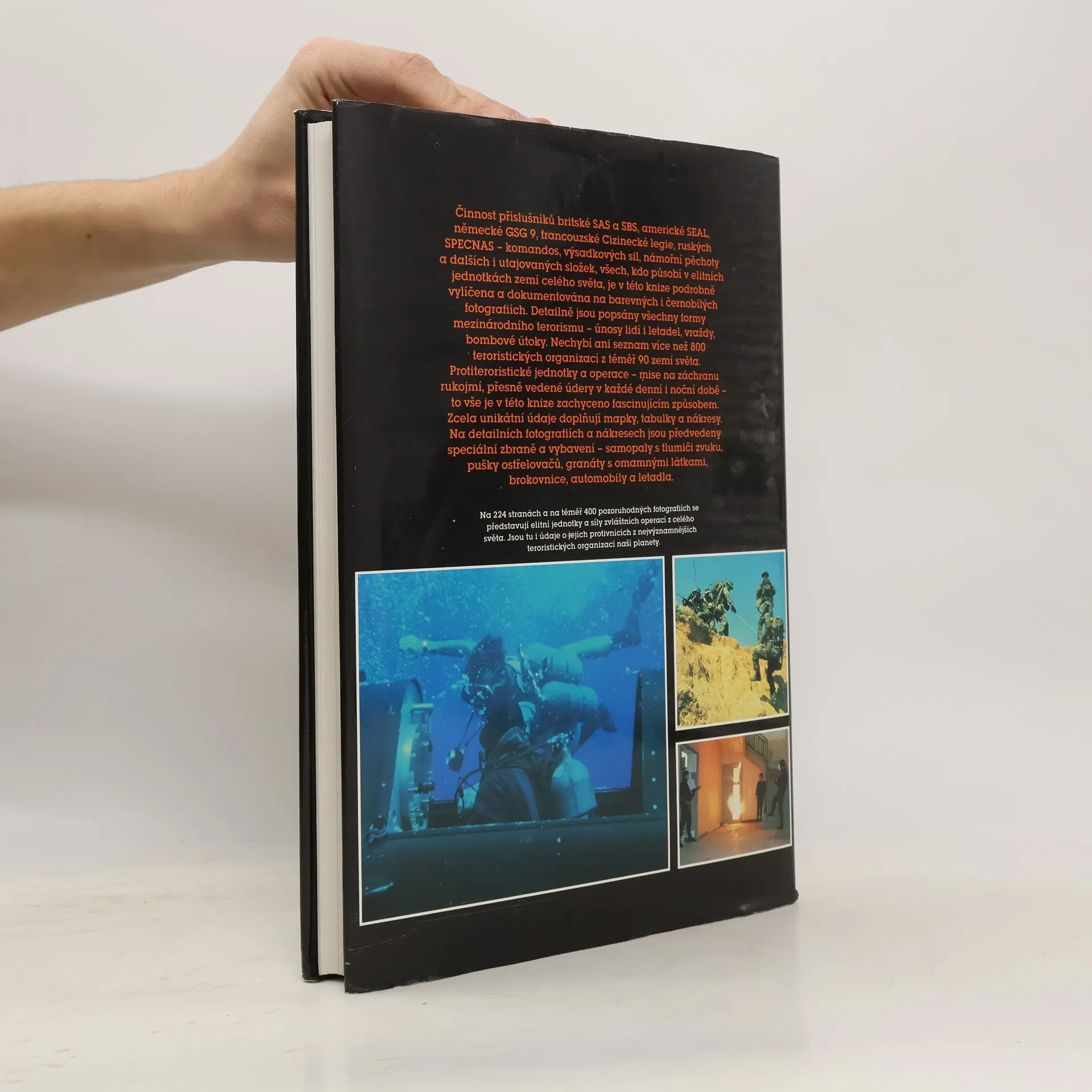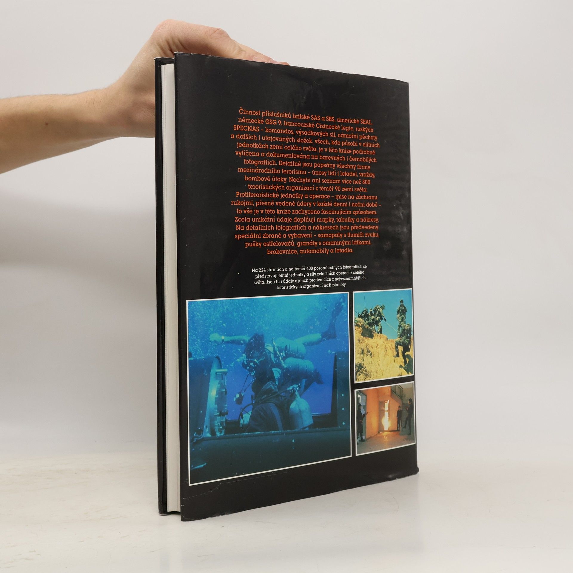 Publikace Elitní jednotky je rozdělena do čtyř hlavních částí. V první části jsou popsány nejvýznamnější jednotky vojenských speciálních sil evropských i mimo evropských zemí (historie vzniku a současná organizace jednotky, počty příslušníků, výcvik, vybavení a výzbroj). Náplní druhé části je soupis významných i menších teroristických organizací celého světa se zvláštním zaměřením na IRA, OOP a Rudé Brigády. Ve třetí části je uvedeno několik vojenských a protiteroristických operací ze 70.a 80.let, které provedly speciální síly. Čtvrtá část se věnuje zbraním a vybavení speciálních jednotek od ručních zbraní až po obrněná vozidla a letadla. Publikace je doplněna desítkami fotografií. Vzhledem k roku vydání, v publikaci pochopitelně chybí aktuální i nedávno minulé události spojené s bojem speciálních sil proti islámskému terorismu.