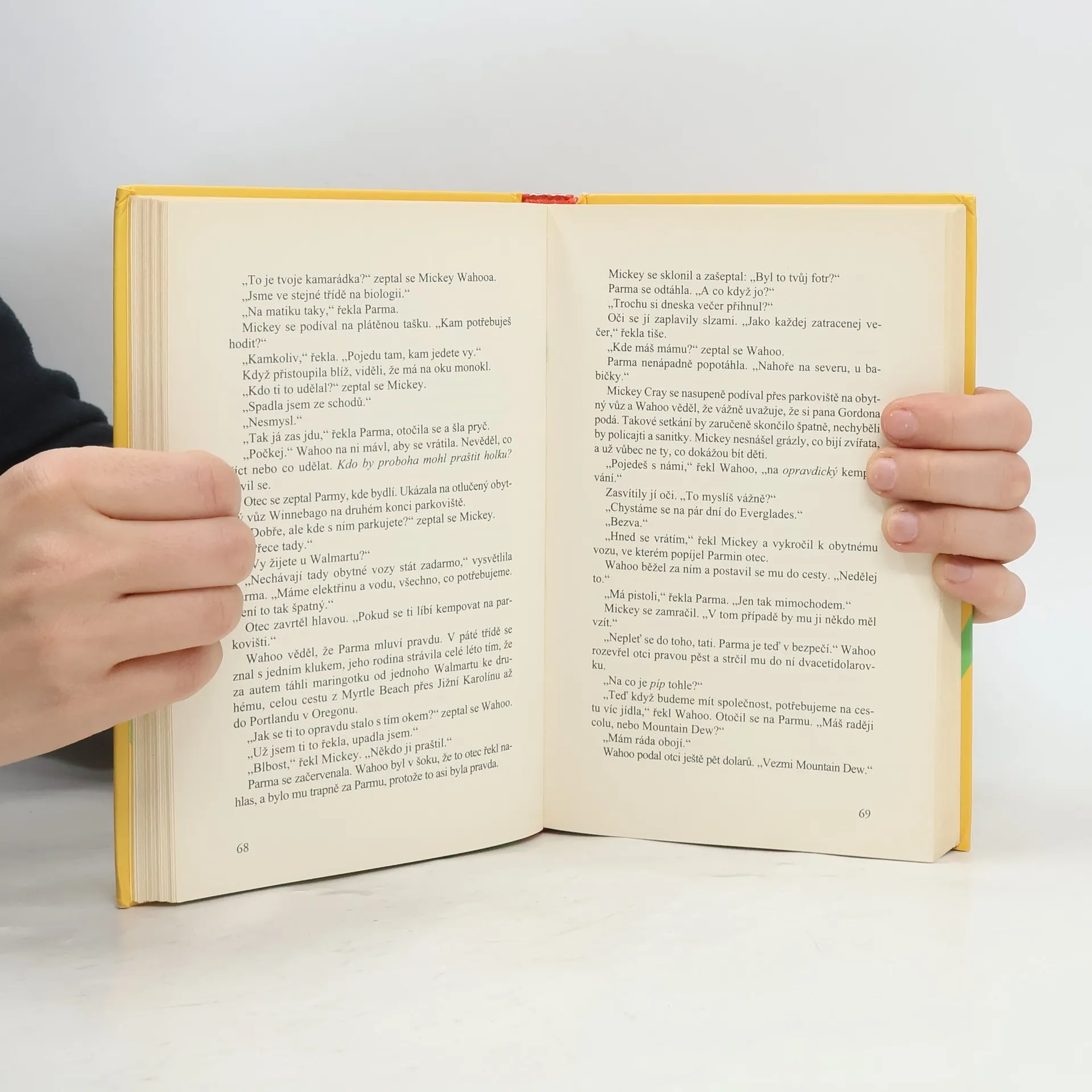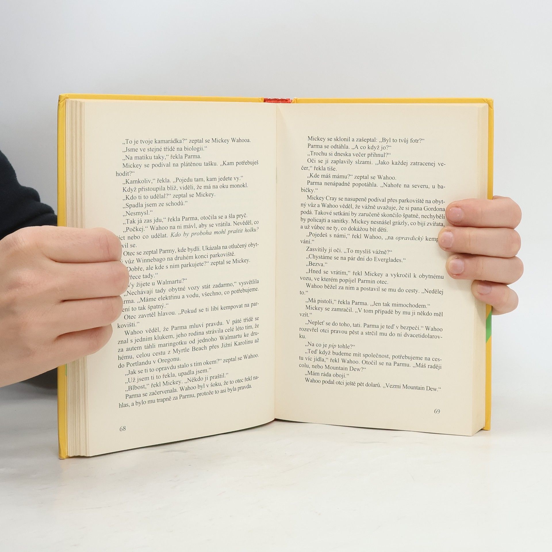 Wahoo Cray žije v zoo. Jeho otec chová zvířata, takže Wahoo vyrůstal se všemi možnými krokodýly, hady, papoušky, krysami, opicemi a mnoha dalšími tvory. Zvířátka tedy zvládá, s tátou je to horší. Když se nechá najmout do televizního pořadu, v němž potrhlý Derek Jelen předvádí, jak přežít v divočině, Wahoo ví, že bude muset nejednou krotit jeho prchlivou povahu. A aby toho nebylo málo, Derek se hned první den nechá kousnout netopýrem a pak se ztratí v bouři... Nový román oblíbeného autora Carla Hiaasena, který hýří vtipem a nabízí spoustu humorných,a le i napínavých situací.