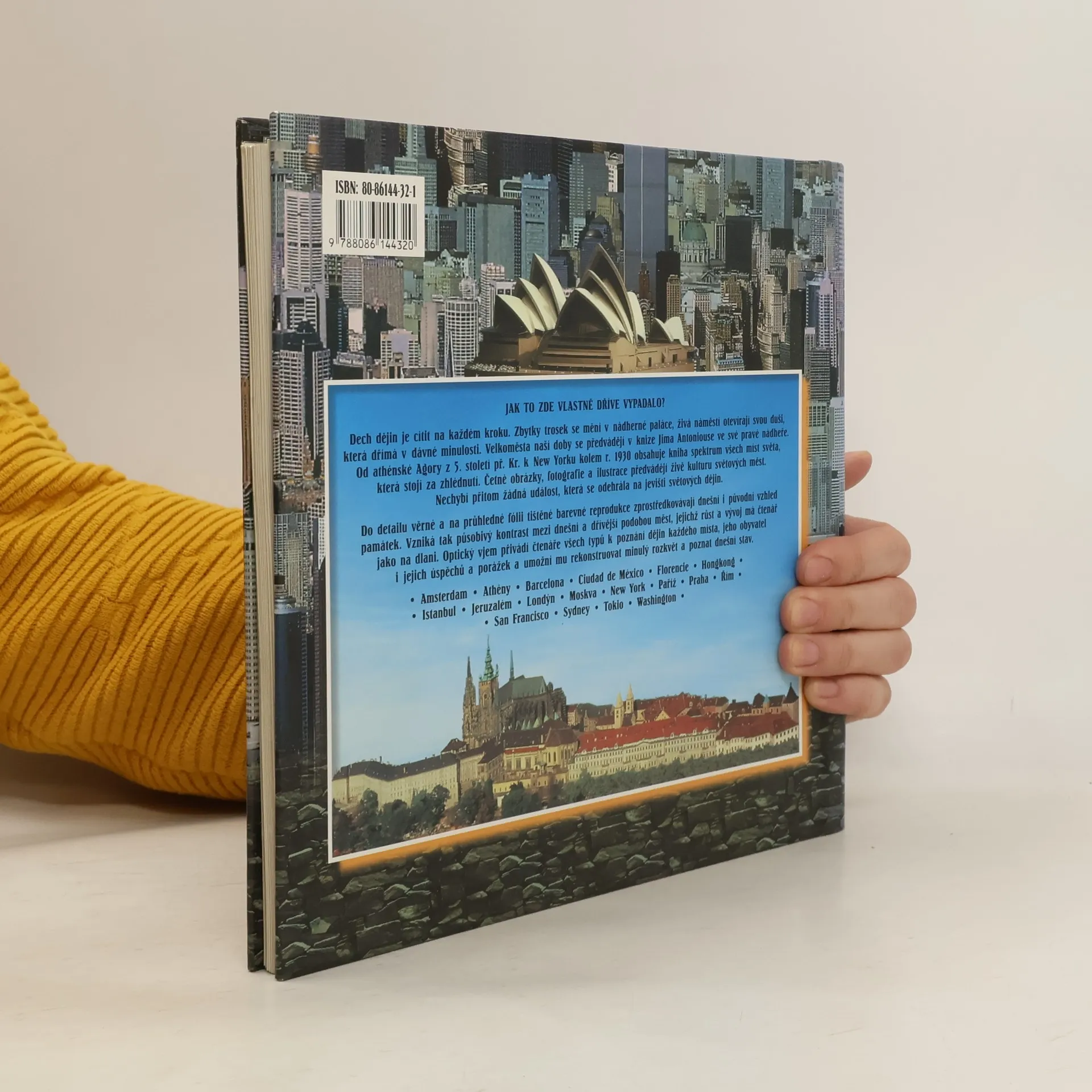 Jak vypadaly Paříž, Amsterdam, Atény, Barcelona, Jeruzalém, Florencie, Hongkong, Řím, San Francisco, Praha, Ciudad de México, New York, Moskva, Istanbul, Sydney, Tokio, Londýn či Washington v minulosti? Přehledná fólie s rekonstrukční kresbou, přiložená na současnou fotografii, vám umožní představit si původní vzhled těchto velkoměst. Fotografie a kresby doplňuje text o historii daného města a popis jeho pozoruhodností.