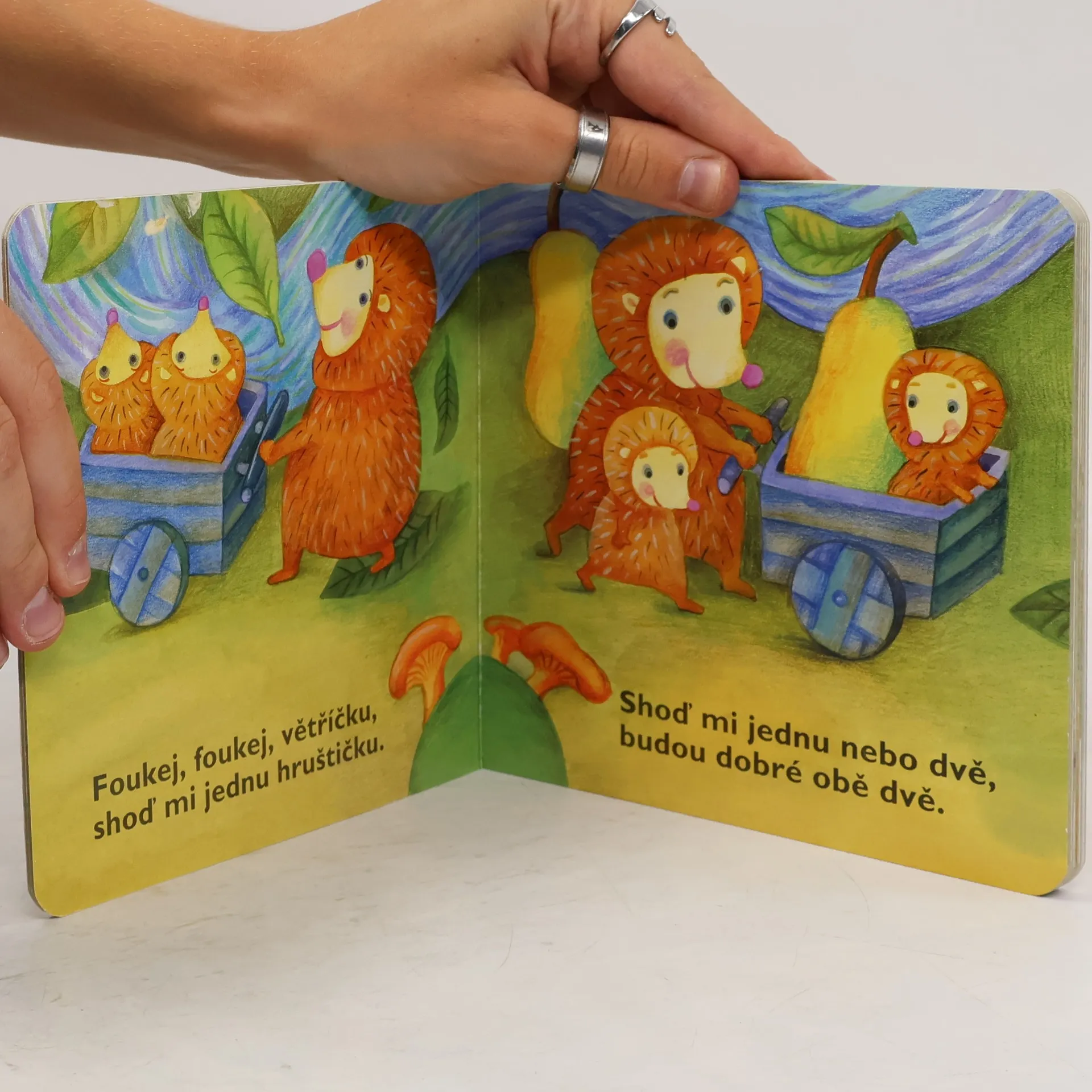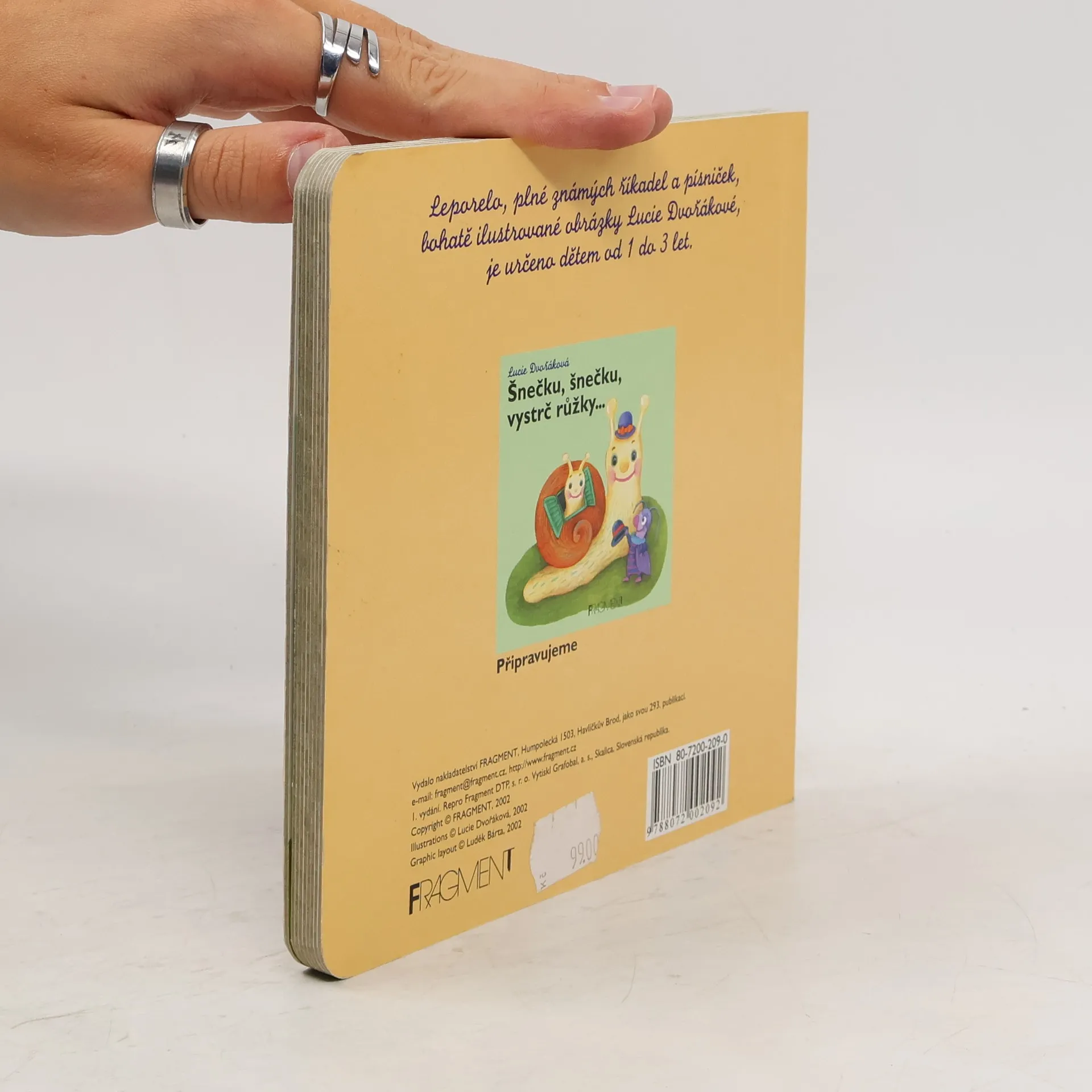 Leporelo, plné známých říkadel a písniček, bohatě ilustrované obrázky Lucie Dvořákové je určeno dětem od 1 do 3 let.