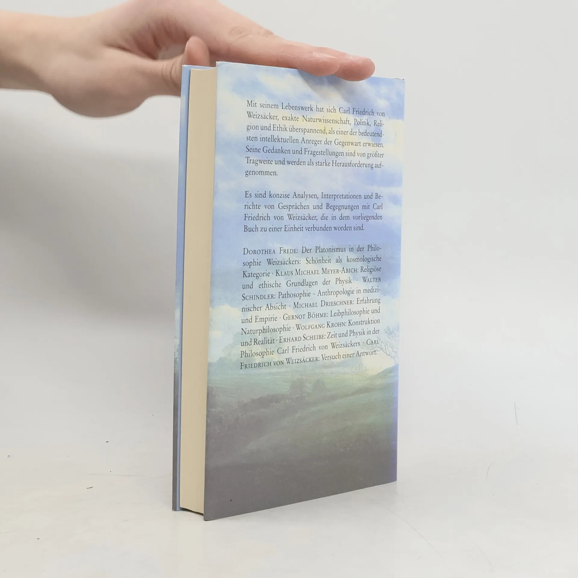 Wolfgang Krohn und Klaus Michael Meyer-Abich interpretieren Gespräche und berichten von Begegnungen mit Carl Friedrich von Weizsäcker. Die Beiträge führen nicht nur in zentrale Denkmotive ein, sondern würdigen vor allem die Universalität und Kreativität dieses bedeutenden Gelehrten.