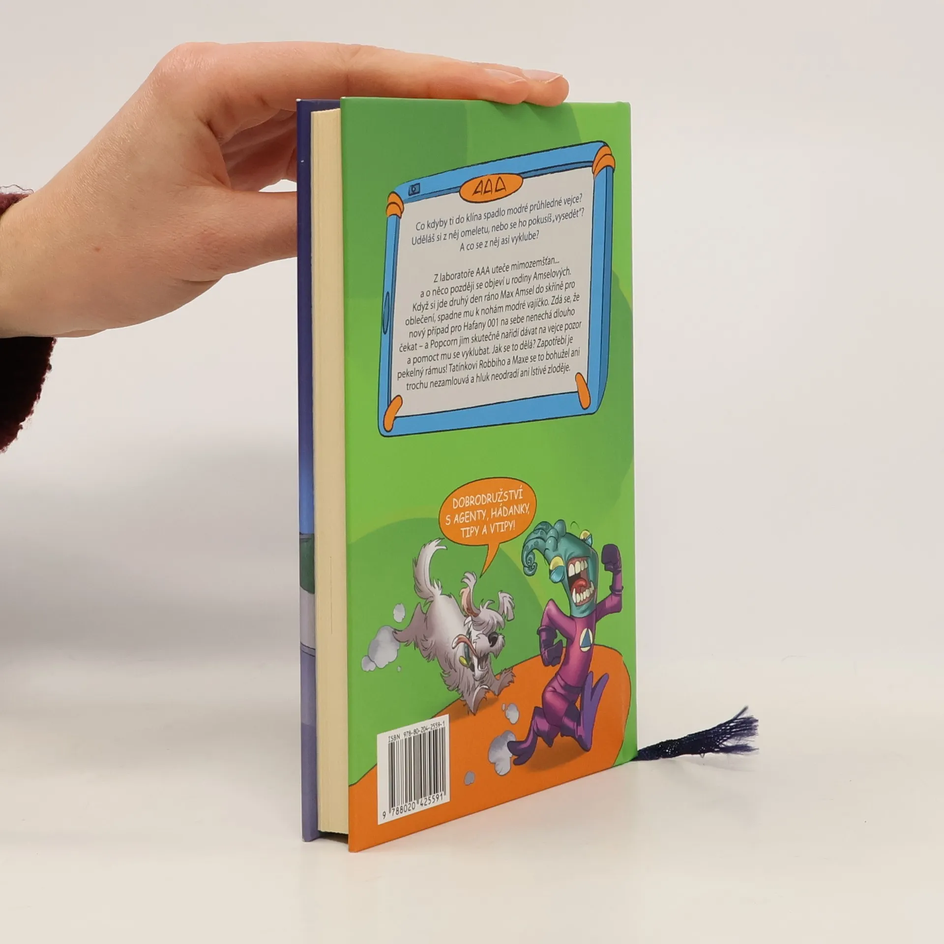 Z laboratoře AAA uteče mimozemšťan... a o něco později se objeví u rodiny Amselových. Když si jde druhý den ráno Max Amsel do skříně pro oblečení, spadne mu k nohám nebesky modré vajíčko. Zdá se, že nový případ pro Hafany 001 na sebe nenechá dlouho čekat - a Popcorn jim skutečně nařídí dávat na vejce pozor a pomoct mu se vyklubat. Jak se to dělá? Zapotřebí je pekelný rámus! Tatínkovi Robbiho a Maxe se to bohužel ani trochu nezamlouvá a hluk neodradí ani lstivé zloděje.