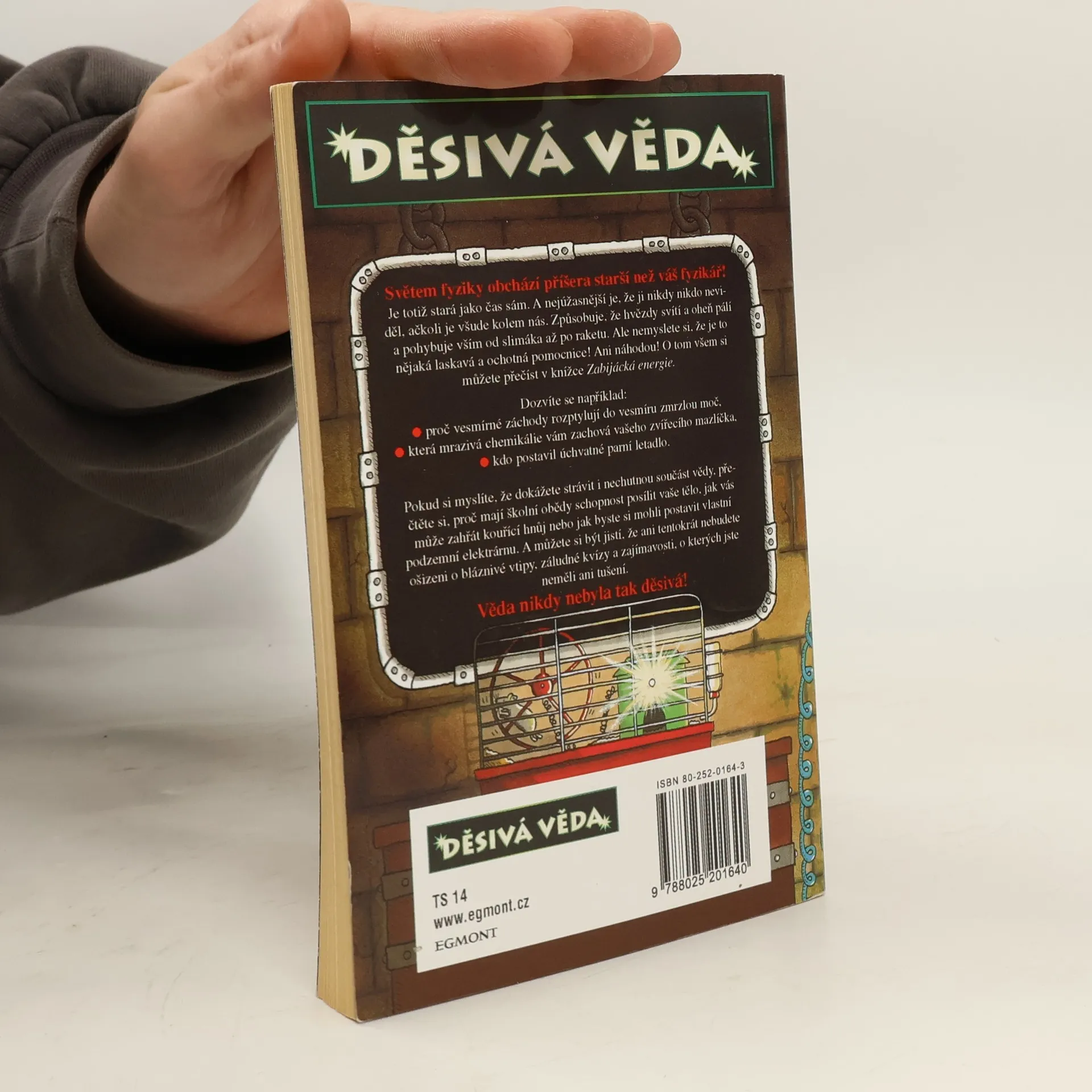 Je totiž stará jako čas sám. A nejúžasnější je, že ji nikdy nikdo neviděl, ačkoli je všude kolem nás. Způsobuje, že hvězdy svítí a oheň pálí a pohybuje vším od slimáka až po raketu. Ale nemyslete si, že je to nějaká laskavá a ochotná pomocnice! Ani náhodou! O tom všem si můľete přečíst v knížce Zabijácká energie. Dozvíte se například, proč vesmírné záchody rozptylují do vesmíru zmrzlou moč, která mrazivá chemikálie vám zachová vašeho zvířecího mazlíčka nebo kdo postavil úchvatné parní letadlo. Pokud si myslíte, že dokážete strávit i nechutnou součást vědy, přečtěte si, proč mají školní obědy schopnost posílit vaše tělo, jak vás může zahřát kouřící hnůj nebo jak byste si mohli postavit vlastní podzemní elektrárnu. A můžete si být jistí, že ani tentokrát nebudete ošizeni o bláznivé vtipy, záludné kvízy a zajímavosti, o kterých jste neměli ani tušení. Věda nikdy nebyla tak děsivá!... celý text