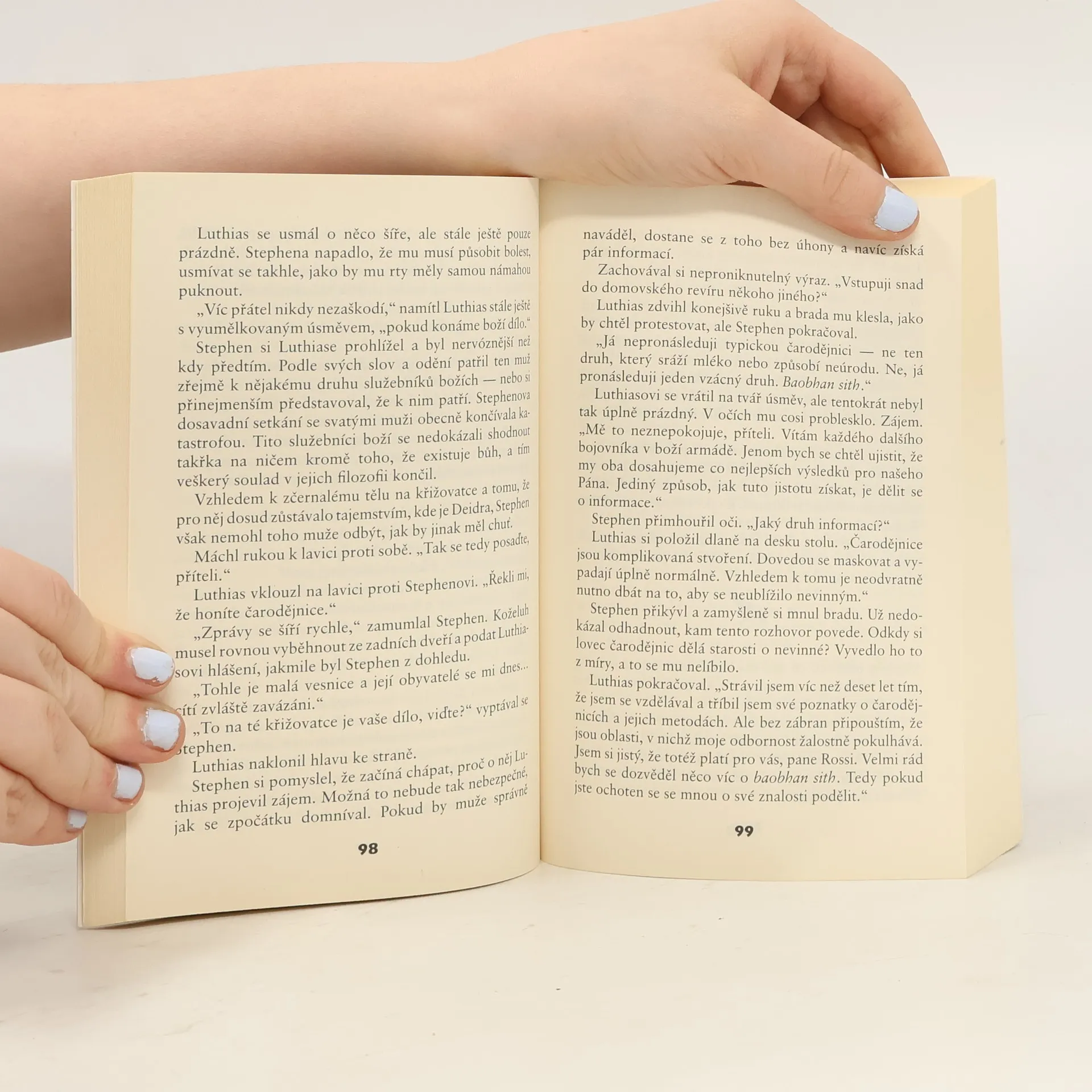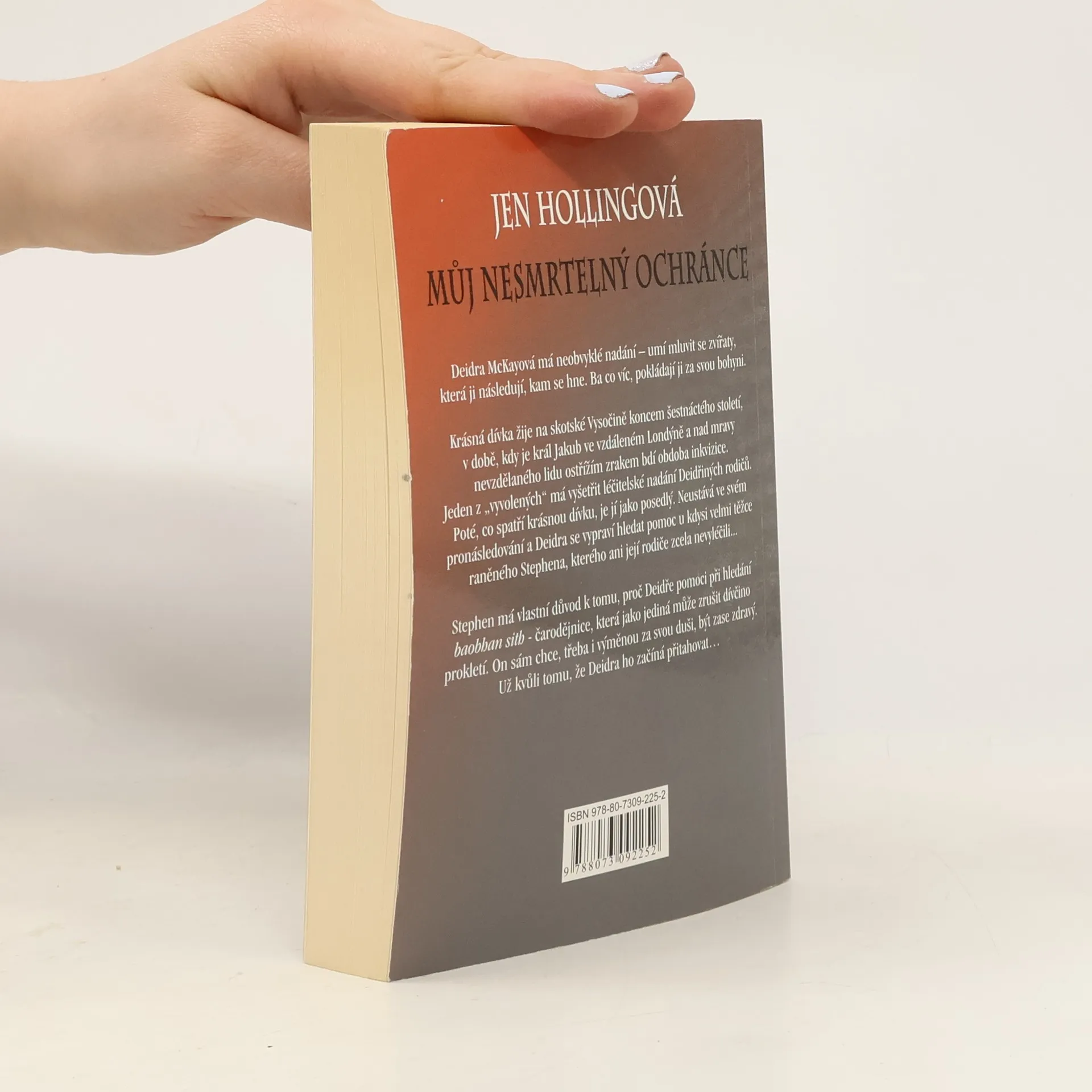Deidra McKayová má neobvyklé nadání - umí mluvit se zvířaty, která ji následují, kam se hne. Ba co víc, pokládají ji za svou bohyni. Krásná dívka žije na skotské Vysočině koncem šestnáctého století, v době, kdy je král Jakub ve vzdáleném Londýně a nad mravy nevzdělaného lidu ostřížím zrakem bdí obdoba inkvizice. Jeden z "vyvolených" má vyšetřit léčitelské nadání Deidřiných rodičů. Poté, co spatří krásnou dívku, je jí jako posedlý. Neustává ve svém pronásledování a Deidra se vypraví hledat pomoc u kdysi velmi těžce raněného Stephena, kterého ani její rodiče zcela nevyléčili... Stephen má vlastní důvod k tomu, proč Deidře pomoci při hledání baobhan sith - čarodějnice, která jako jediná může zrušit dívčino prokletí. On sám chce, třeba i výměnou za svou duši, být zase zdravý. Už kvůli tomu, že Deidra ho začíná přitahovat...