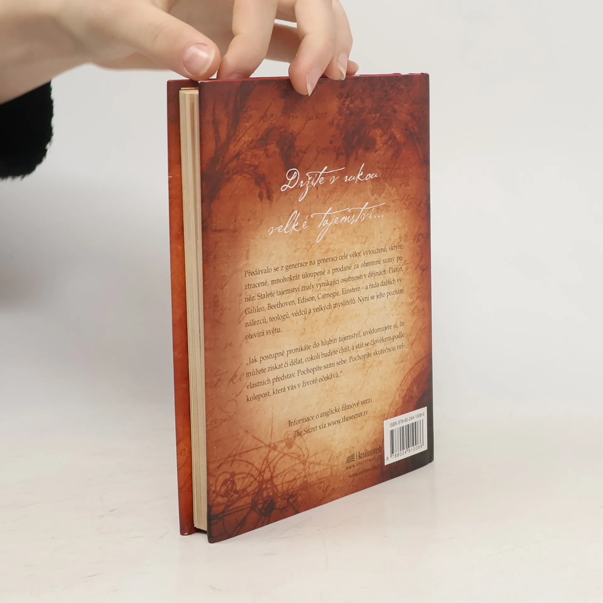 Stojíte na prahu poznání. Fragmenty velkého tajemství se objevují v legendách, mýtech a filozofiích po celá staletí, jen znát tu správnou šifru. Kniha, kterou právě držíte v rukou, shromáždila moudrost předchozích generací a naučí vás dosáhnout všeho, co si přejete - v oblasti peněz, zdraví, vztahů i osobního štěstí. Pochopíte skryté síly, které ve vás dřímají, a odhalíte jejich moc. Učení novodobých mistrů, kteří štěstí, zdraví a bohatství dosáhli, vám ukáže, jak lze tajemství spokojeného života aplikovat na každém kroku.
