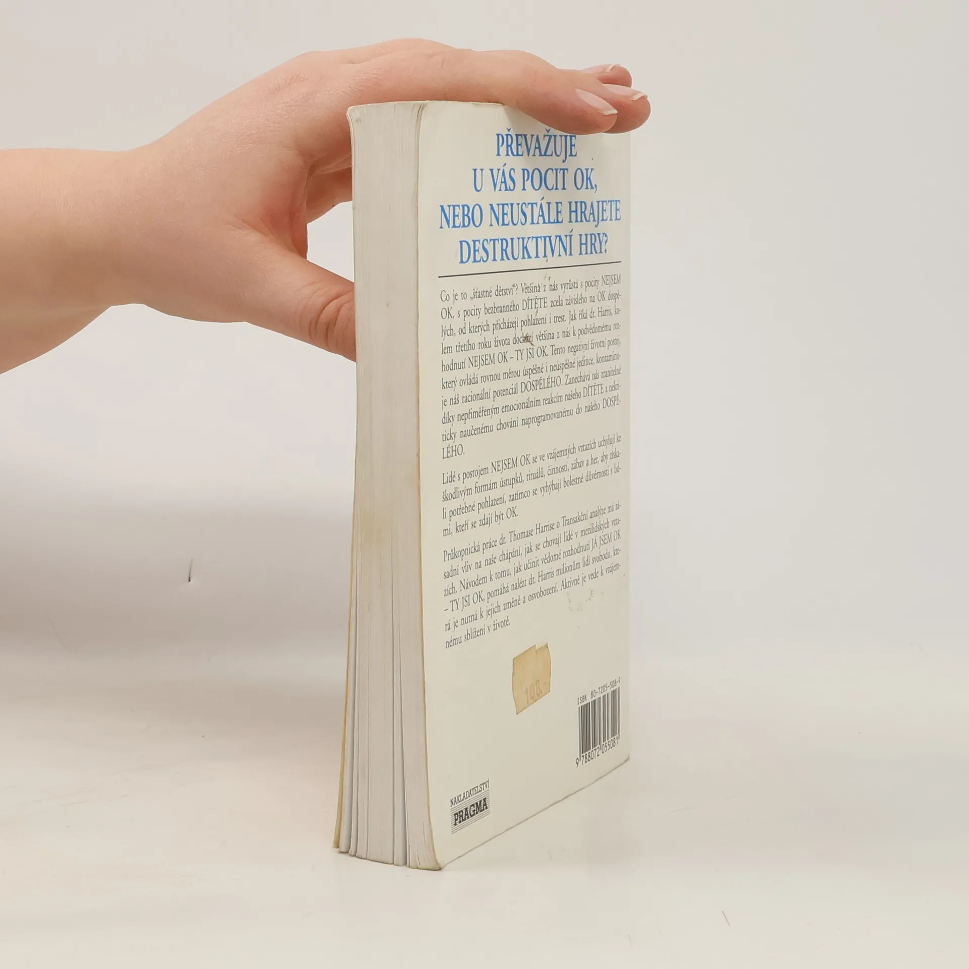 Já jsem OK, ty jsi OK. Transakční analýza mění vědomí a chování lidí, kteří nikdy nepoznali pocit, že jsou OK. Bestseller o transakční analýze nabízí cestu lidem, kteří si nesou z dětství negativní životní postoj, který posléze ovlivňuje racionální potenciál dospělého... Průkopnická práce dr. Thomase Harrise o Transakční anylýze má zásadní vliv na naše chápání, jak se chovají lidé v mezilidských vztazích. Návodem k tomu, jak učinit vědomé rozhodnutí Já sem OK - ty jsi OK, pomáhá nalézt dr. Harris miliónům lidí svobodu, která je nutná k jejich změně a osvobození. Aktivně je vede k vzájemnému sblížení v životě.