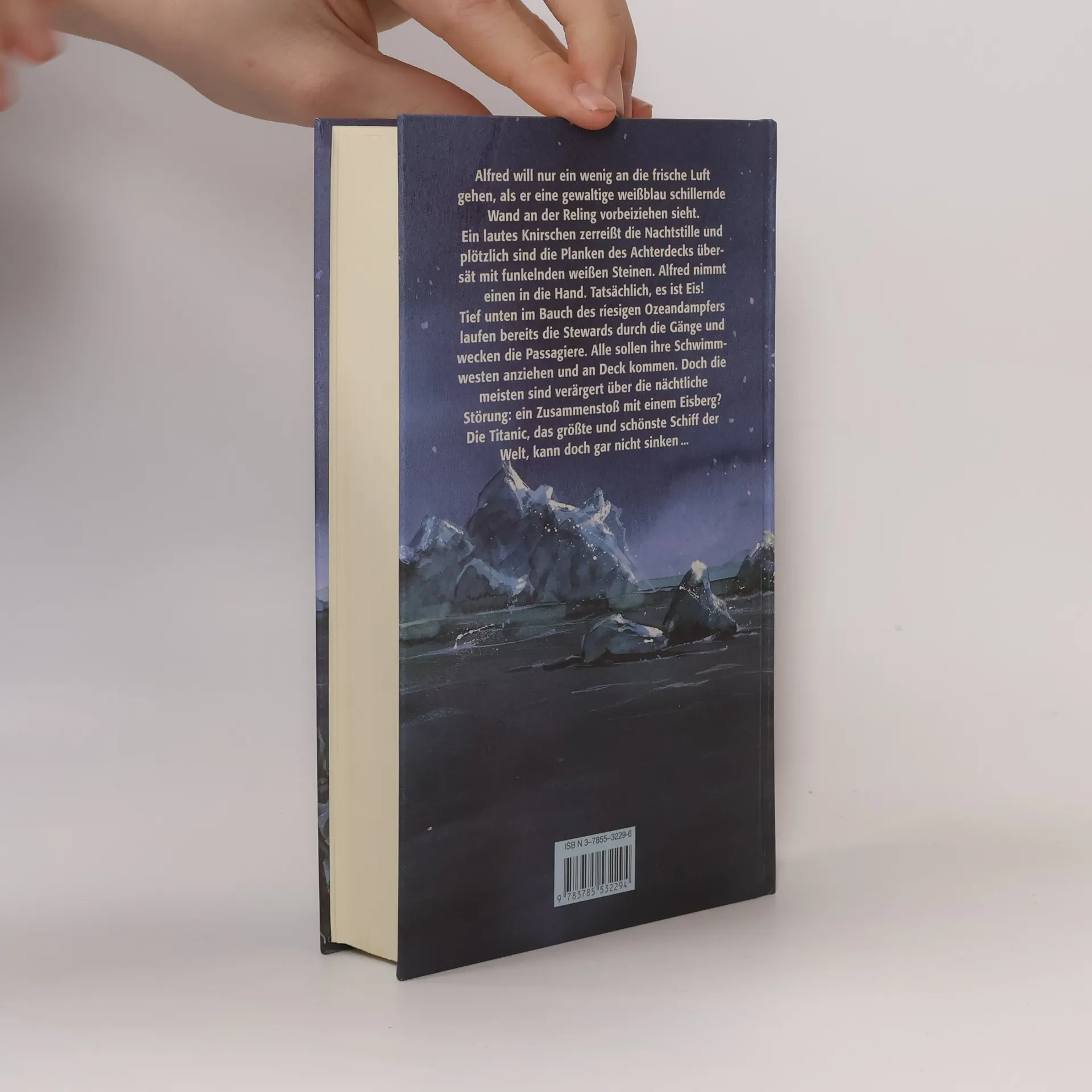 Alfred will nur ein wenig an die frische Luft gehen, als er eine gewaltige weißblau schillernde Wand an der Reling vorbeiziehen sieht. Ein lautes Knirschen zerreißt die Nachtstille und plötzlich sind die Planken des Achterdecks übersät mit funkelnden weißen Steinen. Alfred nimmt einen in die Hand. Tatsächlich, es ist Eis! Tief unten im Bauch des riesigen Ozeandampfers laufen bereits die Stewards durch die Gänge und wecken die Passagiere. Alle sollen ihre Schwimmwesten anziehen und an Deck kommen. Doch die meisten sind verärgert über die nächtliche Störung: Ein Zusammenstoß mit einem Eisberg? Die Titanic, das größte und schönste Schiff der Welt, kann doch gar nicht sinken ...
