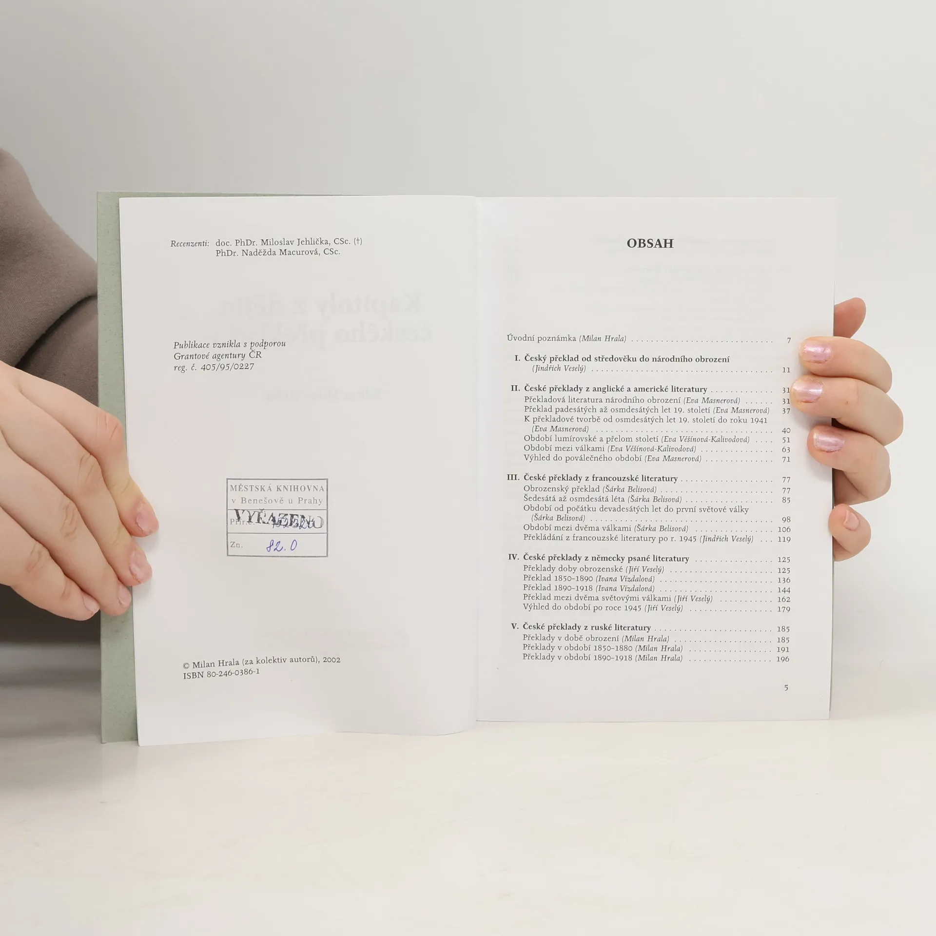 Publikace představuje vůbec první syntetizující práci věnovanou dějinám českého překladu. V samostatných kapitolách se autoři postupně věnují českému humanistickému a renesančnímu překladatelství, překládání děl reformačních a novodobému vývoji uměleckého překladu z anglické, francouzské, německé, ruské a španělské literatury. Výklad je ukončen druhou světovou válkou, s obecným přesahem do druhé poloviny 20. století. Kniha zároveň čtenářům poskytuje základní vymezení postavení překladové literatury v české kulturní historii a velké množství pramenných informací.