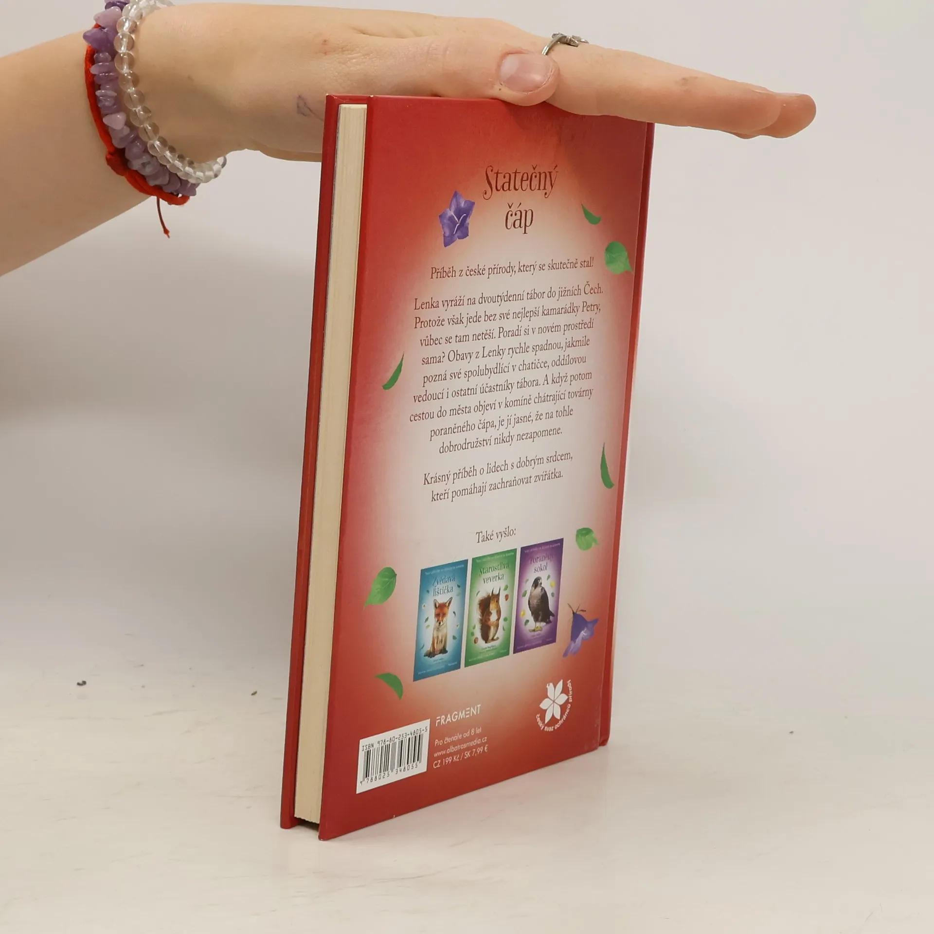 Příběh z české přírody, který se skutečně stal. Lenka vyráží na dvoutýdenní tábor do jižních Čech. Měla jet s kamarádkou Petrou, nakonec ale odjíždí sama. Bojí se, jestli to bez ní zvládne. Dokáže si najít kamarády? Jakmile pozná holky, se kterými bydlí v chatičce, obavy z ní rychle spadnou. A když potom cestou do města objeví v komíně chátrající továrny poraněného čápa, je Lence jasné, že na tenhle tábor nikdy nezapomene. Krásný příběh o lidech s dobrým srdcem, kteří pomáhají zachraňovat zvířátka.