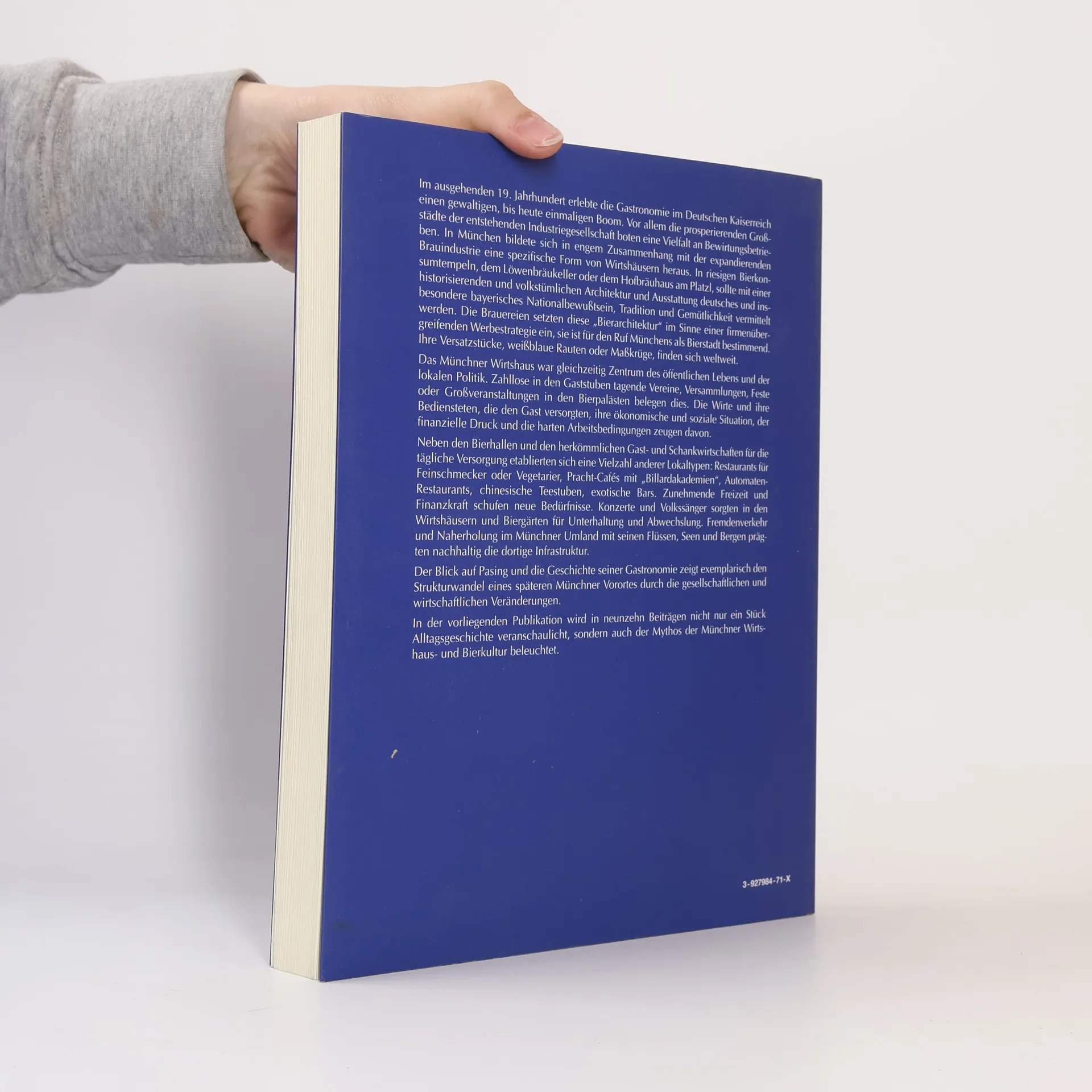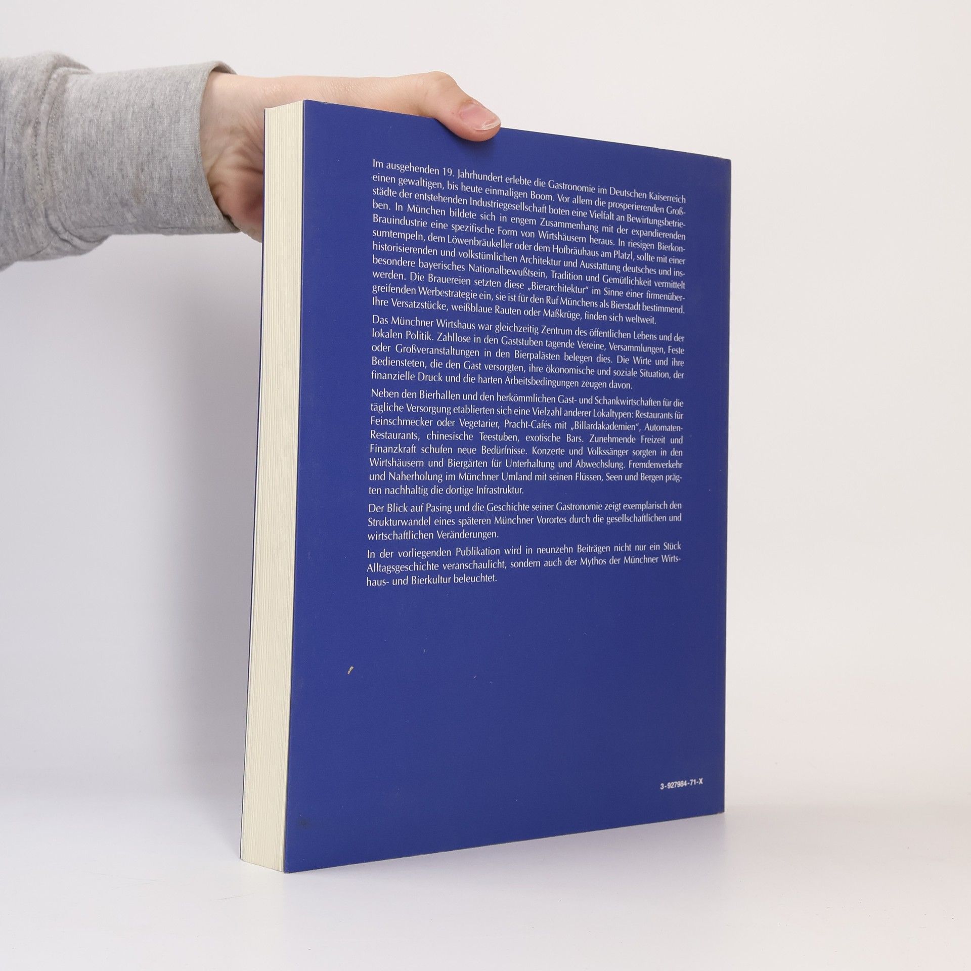 Inhaltsverzeichnis: 1. Verschiedene Formen der Gastronomie 2. Bierpaläste 3. Münchner Großbrauereien 4. Brauprozeß und Biersorten 5. Bier, Bier, überall Bier. 6. Noblesse oblige 7. Exotismus und Stilvielfalt 8. Die Flucht vor dem fetten Braten 9. Automaten-Restaurants als Symbol des technischen und gesellschaftlichen Fortschritts 10. „schon von Alters her ein beliebter Ausflugsort der Münchner“ 11. Wirtshausleben 12. Wirtshaus und Politik 13. Das Vereinsleben in Münchner Wirtshäusern 14. Es floß manchmal Blut 15. Bockbier mit Beethoven 16. Das Wirtshaus als Betrieb 17. Der Blick aufs Wirtshaus 18. Pasing - Kleinstadtgastronomie vor den Toren Münchnes 19. Epilog (Es gibt jeweils noch weitere Untertitel)