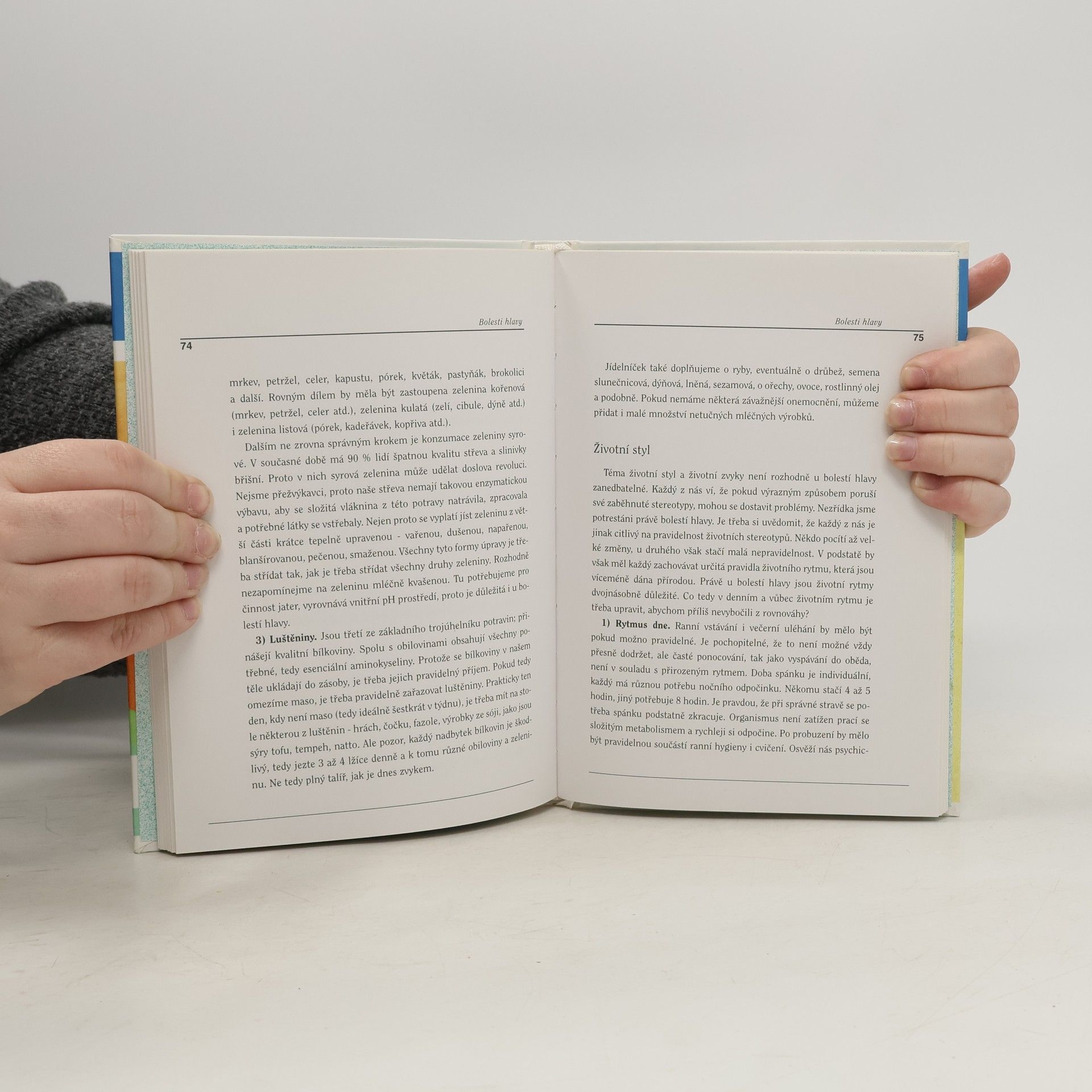 Informace o příčinách, diagnostice a přírodní léčbě bolestí hlavy. Další kniha z Jonášovy knižnice zdraví popisuje nejčastější příčiny,které v různých kombinacích vedou k projevu bolesti hlavy (ke klasické migréně a ostatním bolestem hlavy).Kniha vysvětluje,jak se která příčina projeví a jak je možné poznat,co naši bolest způsobilo.Větší část knihy pak nabízí některé metody alternativní medicíny,které vedou k diagnostice a léčbě bolestí hlavy - akupunktura,akupresura,různá fyzická i psychická relaxační cvičení a úprava jídelníčku a celé životosprávy. 11.5.1998 Selinges