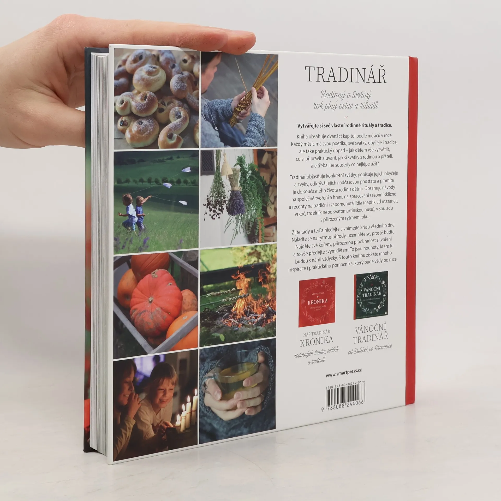 Limitovaná edice - bílá obálka. Kniha obsahuje dvanáct kapitol podle měsíců v roce. Každý měsíc má svou poetiku, své svátky a rituály, ale i praktický dopad - jak vše dětem vysvětlit, včas si připravit, na nic nezapomenout? Vytvoříte si své vlastní rodinné rituály a tradiční svátky si společně s rodinou, sousedy a přáteli pěkně užijete. Rodina - Tradice - Rok - Rytmus - Příroda - Rituály - Vaření - Tvoření - Zahrada Všichni rádi slaví. V listopadu pečeme husy, Vánoce slavíme nejraději, na Velikonoce si obarvíme vajíčka. Víme ale proč? Filipojakubská či svatojánská noc nám znějí tajemně a magicky. Kniha vysvětluje konkrétní svátky, objevuje souvislosti, popisuje symboly a významy a promítá je do současného života. Obsahuje návody na jednoduché tvoření a recepty na tradiční i zapomenutá jídla (např. svatomartinské rohlíčky či šípkový čaj). Vychází z tradic a vrací rodinnému, ale i společenskému životu prapůvodní podstatu, kdy se žilo ve spojení s přírodními cykly a ve větší pospolitosti. Mnoho svátků a obyčejů se slaví společně - v obci, vesnici, komunitě, mezi sousedy. Nalaďte se na rytmus přírody, uzemněte se, prostě buďte. Najděte své kořeny, přirozenou práci, radost z tvoření a to vše předejte svým dětem. Jsou to totiž hodnoty, které tu budou s námi (snad) vždycky. Kniha je vhodná pro maminky, tatínky, pro mateřská centra, školky, školy, babičky a dědečky. Rodinný a tvořivý rok plný oslav a rituálů.