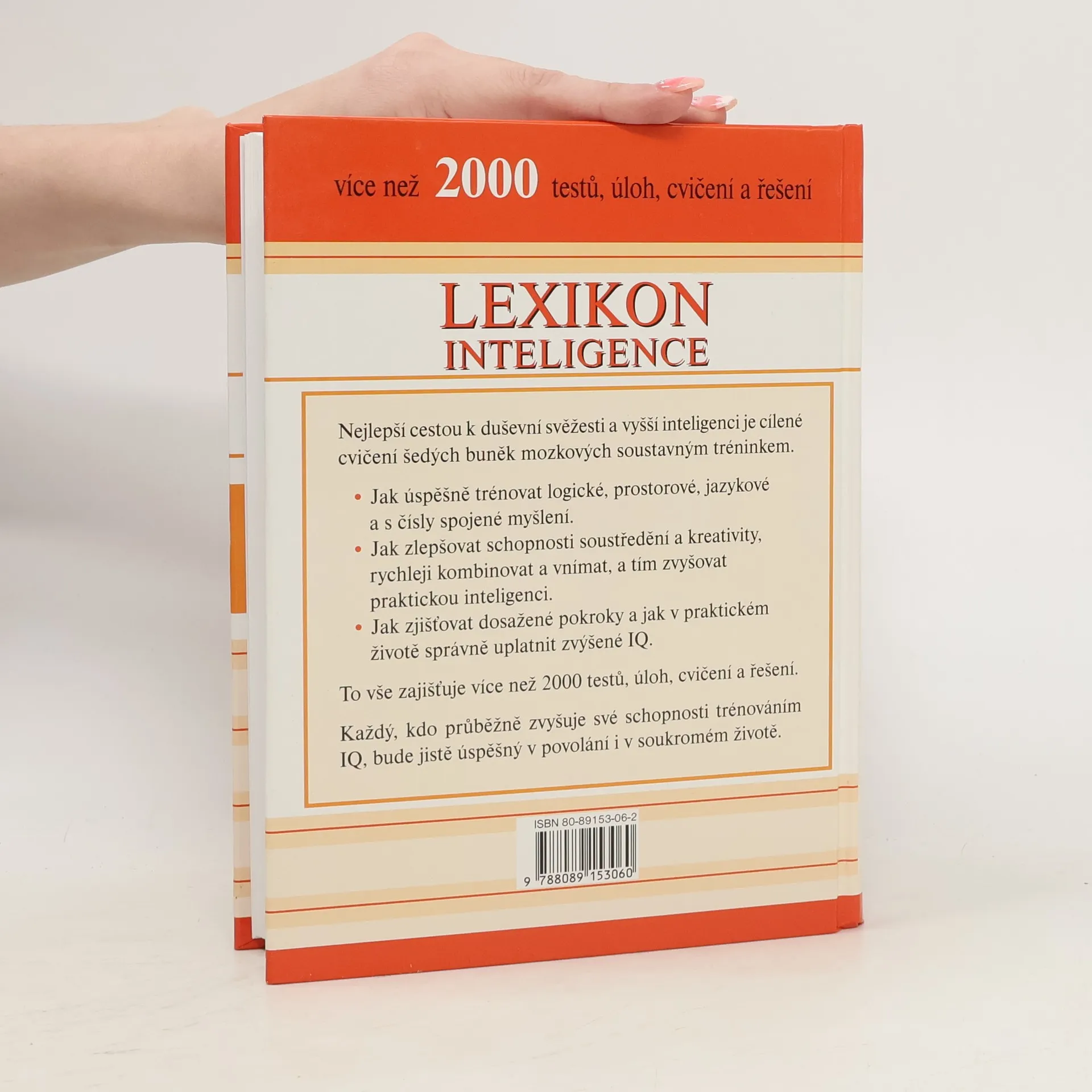 Nejlepší cestou k duševní svěžesti a vyšší inteligenci je cílené cvičení šedých buněk mozkových soustavným tréninkem. . Jak úspěšně trénovat logické, prostorové, jazykové a s čísly spojené myšlení. . Jak zlepšovat schopnosti soustředění a kreativity, rychleji kombinovat a vnímat, a tím zvyšovat praktickou inteligenci. . Jak zjišťovat dosažené pokroky a jak v praktickém životě správně uplatnit zvýšené IQ. To vše zajišťuje více než 2000 testů, úloh, cvičení a řešení. Každý, kdo průběžně zvyšuje své schopnosti trénováním IQ, bude jistě úspěšný v povolání i v soukromém životě.