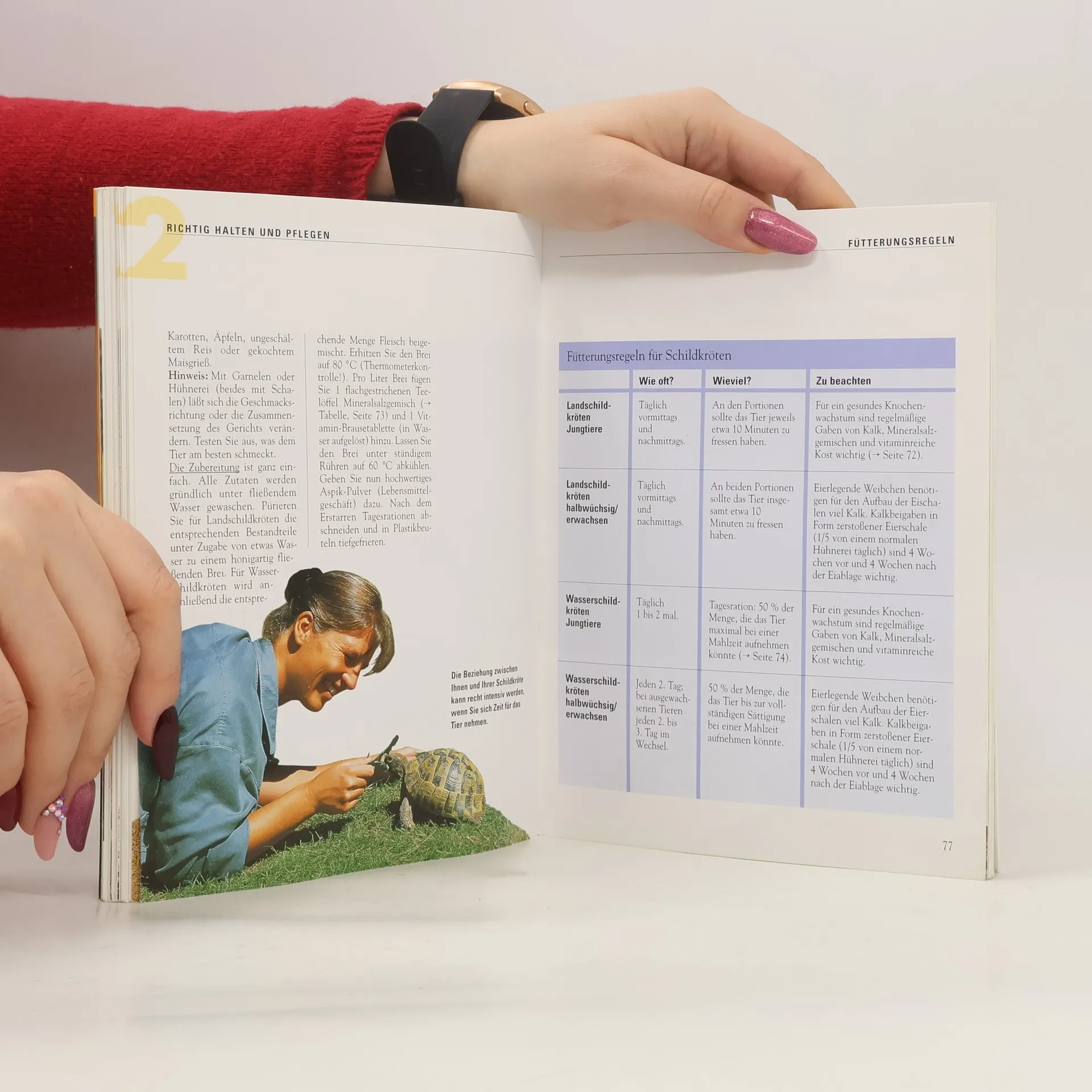 Artgerecht halten, gesund ernähren, richtig verstehen. Bereits zu Zeiten der Dinosaurier lebten Schildkröten auf der Erde. In ihrer Gestalt haben sie sich bis heute kaum zu den damals lebenden Schildkröten verändert, wie fossile Funde beweisen. Erstaunlich ist ihr Verhalten dem Menschen gegenüber. Als Heimtier kann sich eine Schildkröte so an Sie gewöhnen, daß sie auf Zuruf herbeikommt und sich sogar ihre 'Streicheleinheiten' abholt. Die urtümlichen Reptilien sind zwar stille Hausgenossen, faszinieren aber durch ihre ausgeprägte Körpersprache, wodurch sie in der Lage sind, ihre momentane Stimmung auszudrücken