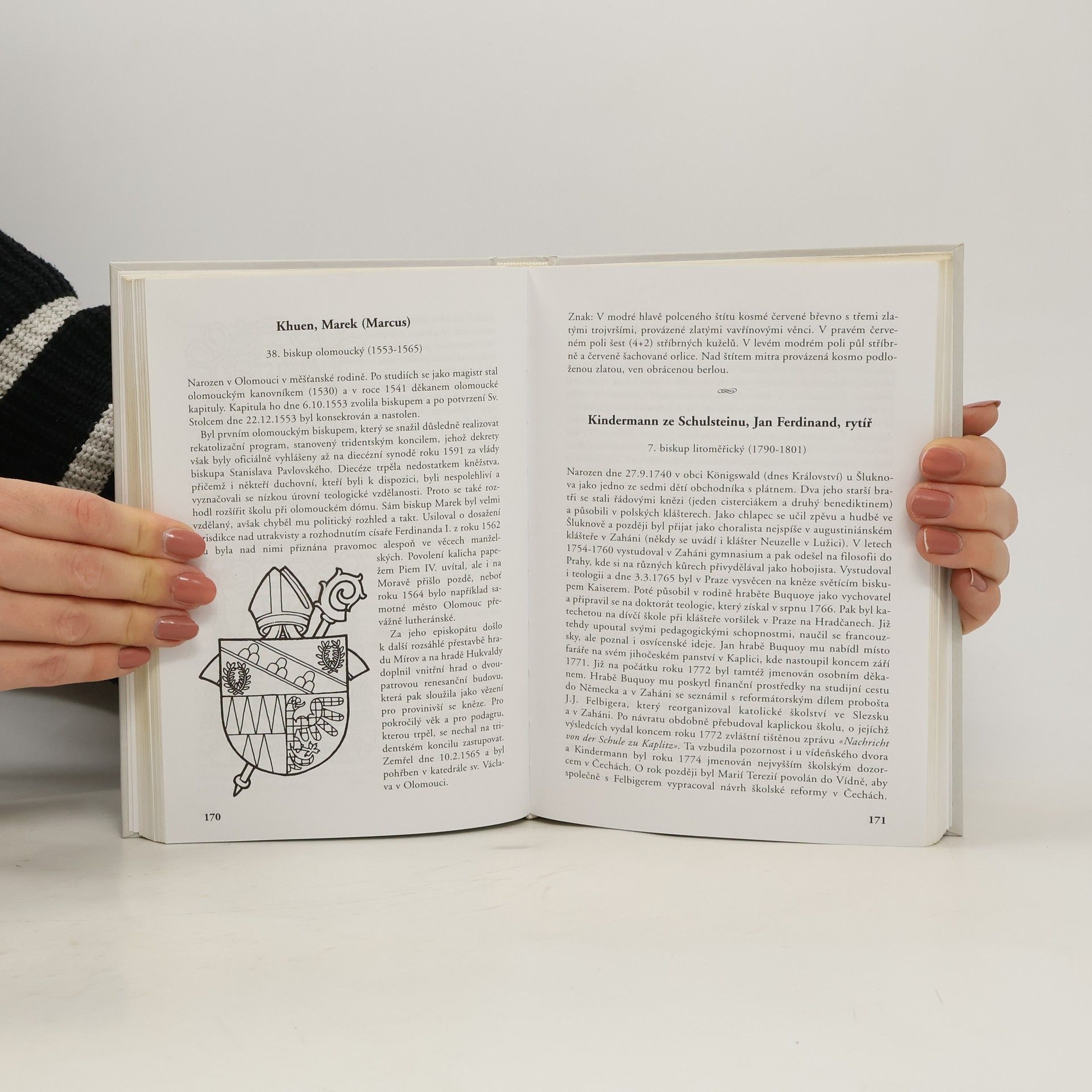 Kniha v samostatných medailonech přibližuje jednotlivé sídelní biskupy. Neomezuje se jen na výčet faktografických dat, ale seznamuje i s širšími souvislostmi z hlediska reálií a církevních dějin. Každý medailonek je zakončen blasony a vyobrazeními užívaných znaků.