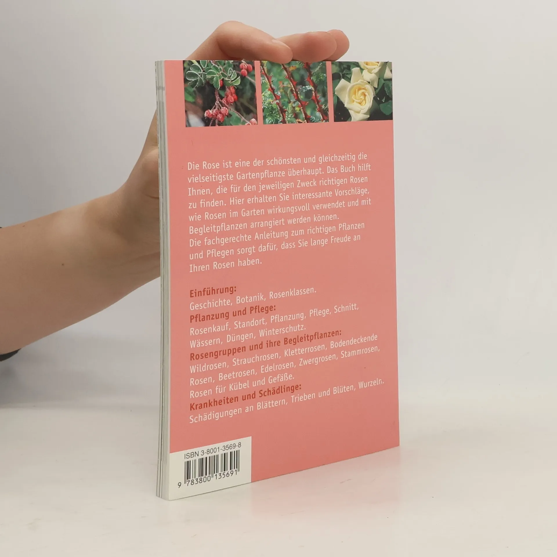 Die Rose ist eine der schönsten und gleichzeitig die vielseitigste Gartenpflanze überhaupt. Dieses Buch hilft, die für den jeweiligen Zweck richtige Rose zu finden. Es stellt die verschiedenen Rosentypen vor, beschreibt die besten Sorten und macht zahlreiche Vorschläge, wie sie im Garten wirkungsvoll verwendet werden können und welche anderen Pflanzen dazu passen. Ausführliche Hinweise zur Pflanzung und Pflege runden diesen praktischen Ratgeber für den Rosenneuling und Rosenfreund ab.