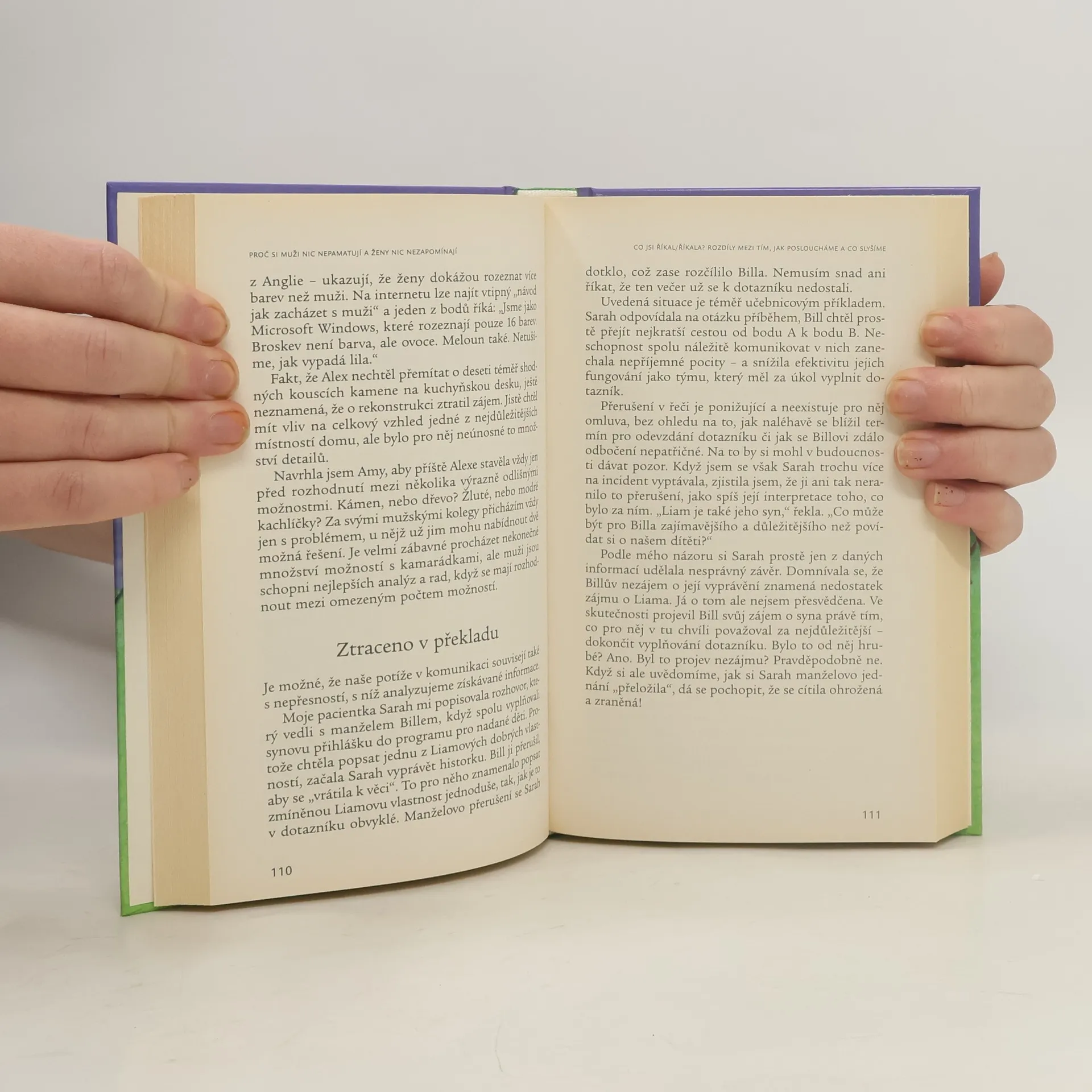 Psychologická příručka o odlišnostech mužů a žen, které se projevují v partnerských vztazích. Autorka vysvětluje, jak muži a ženy rozdílně přemýšlejí, jinak vnímají důležitost věcí a zcela odlišně vyhodnocují různé situace. Poskytuje informace o vyvíjejícím se vztahu mezi mužem a ženou, vzájemné přitažlivosti, sexuální touze, problémech v rodičovství, vztahu partnerů v penzi. Zajímavé, zároveň vtipné rady mohou pomoci vyřešit některé problémy, které vznikají z odlišnosti mezi příslušníky obou pohlaví.