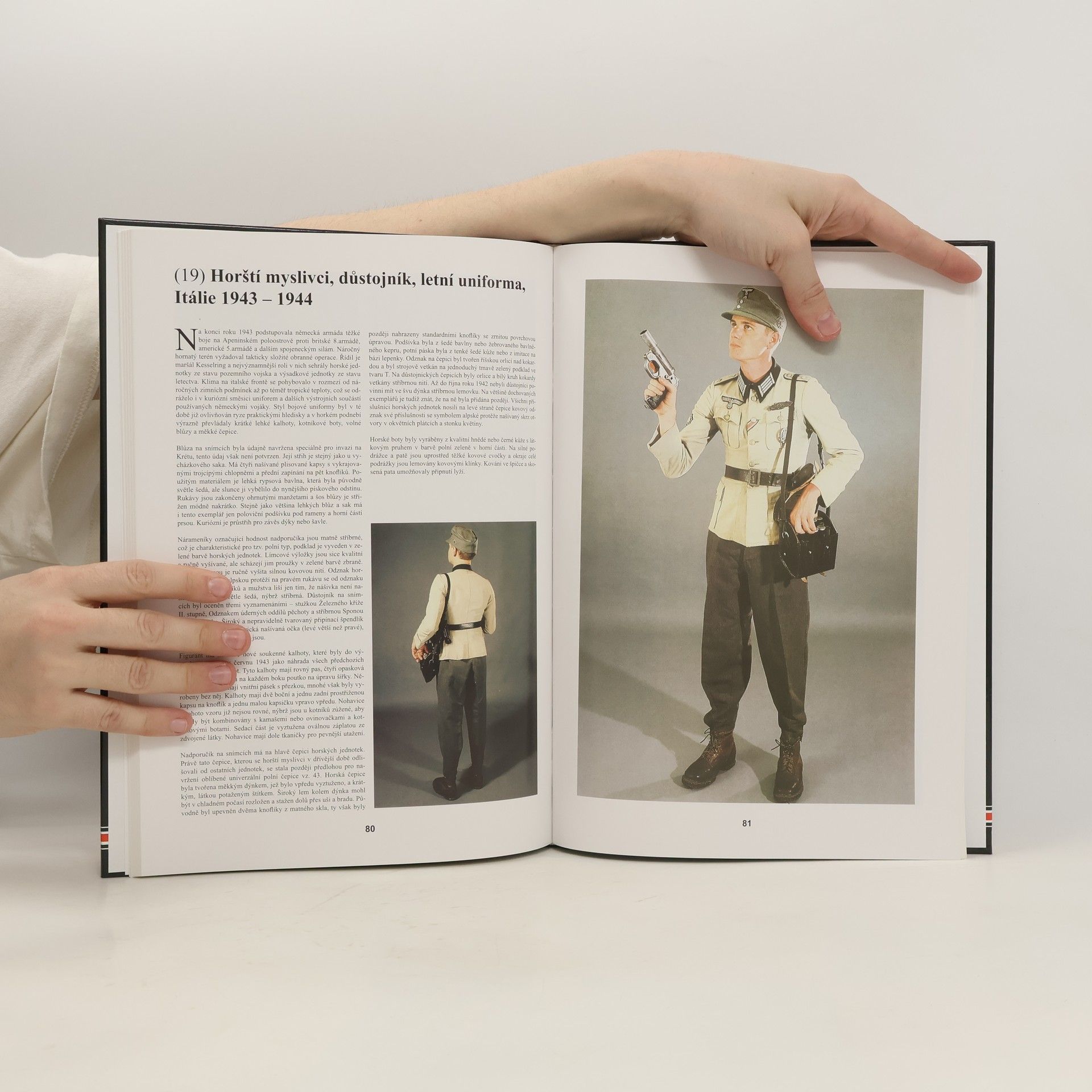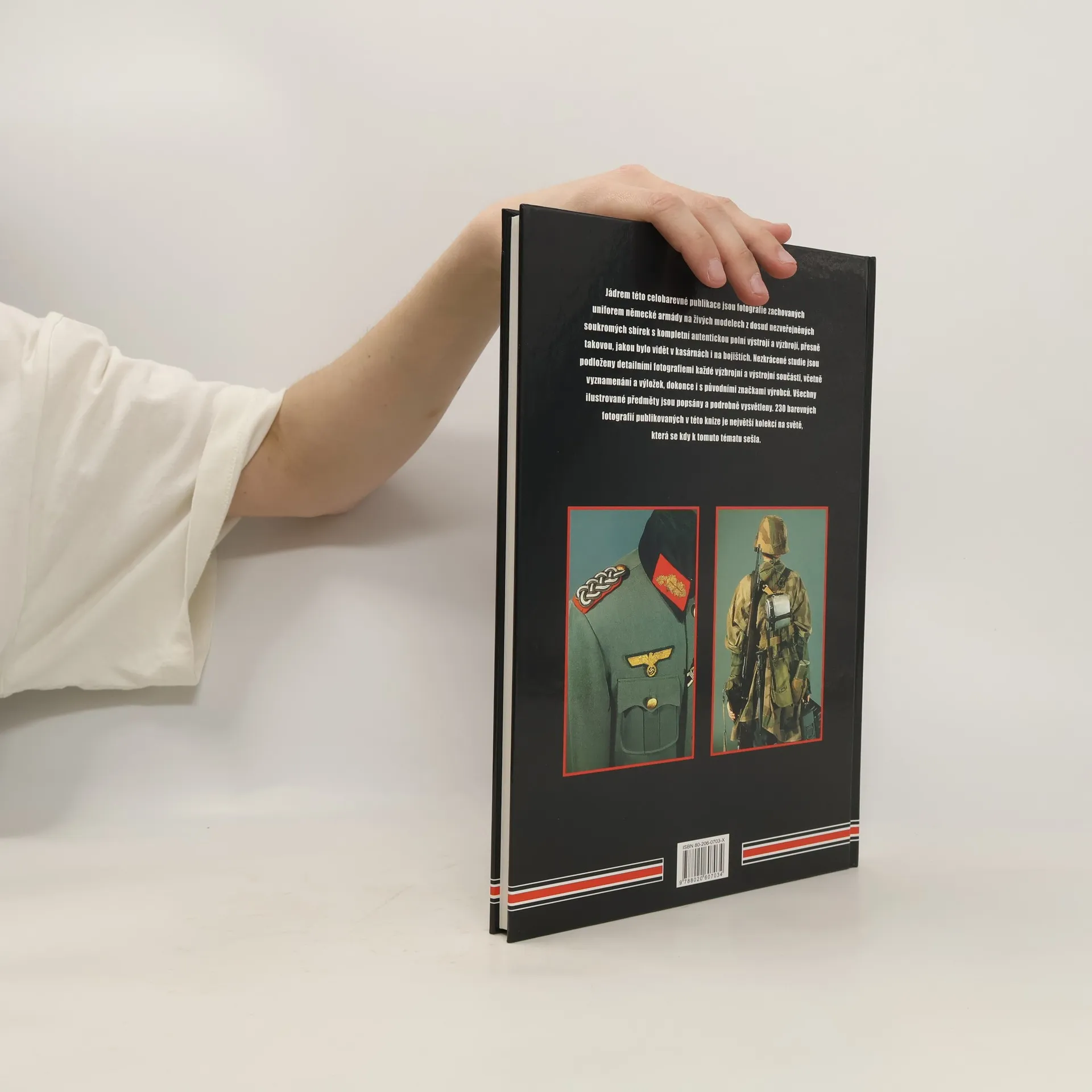 Jádrem této celobarevné publikace jsou fotografie zachovaných uniforem německé armády na živých modelech z dosud zveřejněných soukromých sbírek s kompletní autentickou polní výstrojí a výzbrojí, přesně takovou, jakou bylo vidět v kasárnách i na bojištích. Nezkrácené studie jsou podloženy detailními fotografiemi každé výzbrojní a výstrojní součásti, včetně vyznamenání a výložek, dokonce i s původními značkami výrobců. Všechny ilustrované předměty jsou popsány a podrobně vysvětleny.... celý text