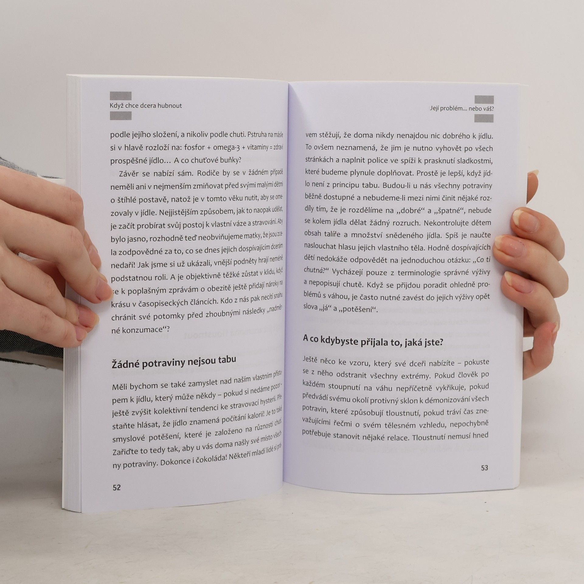 Rodiče často řeší rozhodnutí svých dospívajících dcer začít s dietou a hubnutím. Dívky bývají ovlivněny vzhledem mediálních hvězd a modelek, někdy se ovlivňují navzájem a neuvědomují si, že pro dospívající může být rozhodnutí hubnout nebezpečné. Následky striktních diet pro ně mohou být mnohdy katastrofální. Autorky knihy poskytují rodičům dívek rady, jak v takových případech postupovat, jak zjistit, zda jsou obavy z tloušťky oprávněné, nebo ne, jak reagovat, když přílišná váha je jen přesvědčením dotyčné dívky, jak zavést správné stravovací návyky a co dělat, má-li dívka opravdu stabilní nadváhu. Kniha je určena rodičům dospívajících dívek (přibližně od 12 let).