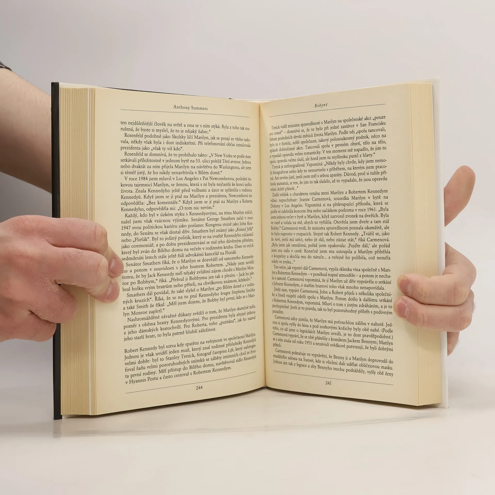 Jsou legendy, které neumírají... K nim bezesporu patří Marilon Monroe, zlatovlasá bohyně filmového plátna se smyslně šeptavým hlasem, symbol sexu pro mnoho generací. Zkušený britský novinář Anthony Summers předkládá v této knize velice zasvěcený a seriózní pohled do jejího života, od neradostného dětství v péči cizích pěstounů, přes ztroskotaná manželství s významnými muži tehdejší doby a její přelétavé lásky a jedno utajené manželství až k tragickému závěru, kdy milostný poměr s prezidentem Johnem Kennedym a jeho bratrem, ministrem spravedlnosti Robertem Kennedym, končí tajemnou sebevraždou. Byla to sebevražda? Zkazky o poměru Marilyn s prezidentem Kennedym nebo jeho bratrem Robertem se začaly šířit ihned po její smrti. Poslední výzkumy potvrzují, že tyto příběhy se zakládají na pravdě.