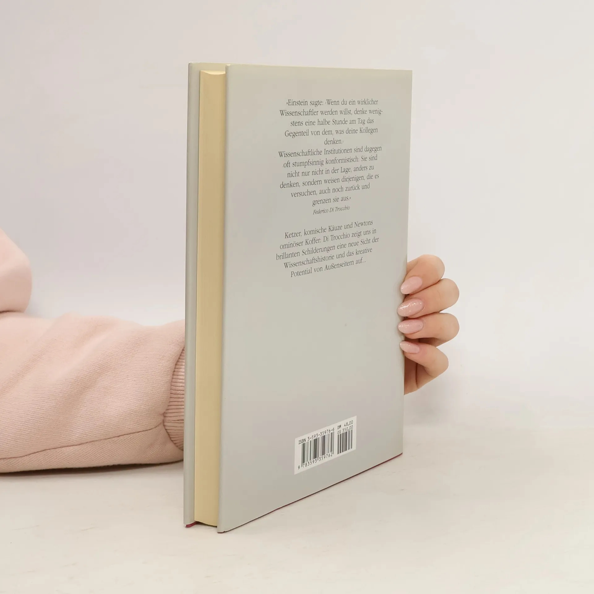 In seinem gradlinigen und lockeren Erzählstil durchschreitet Di Trocchio die Galerie der Entdeckergenies auf der Suche nach deren Macken und schildert die Intoleranz, die den „Wirrköpfen“ von ihren Kollegen entgegengebracht wurde. Das Credo des Autors: mehr Toleranz für Außenseiter und etwas mehr Skepsis gegenüber dem wissenschaftlichen Establishment.