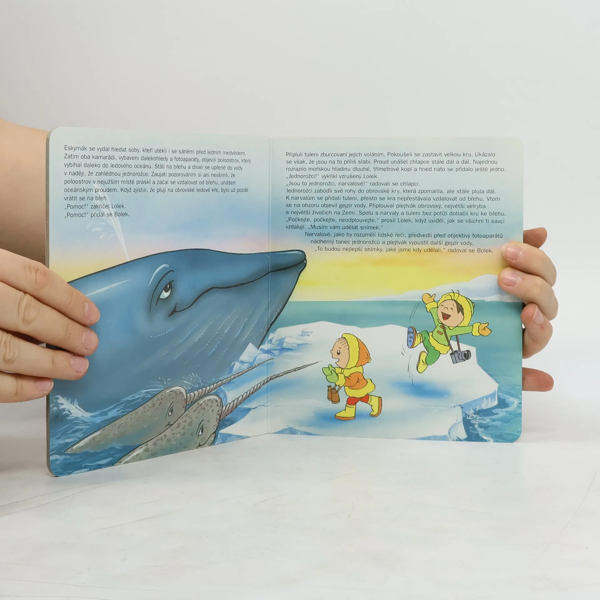 Bolek a Lolek stavějí iglú, prchají před ledním medvědem, jsou unášeni na ledové kře a fotografují dva narvaly, které ani místní starý Eskymák dosud nepotkal.