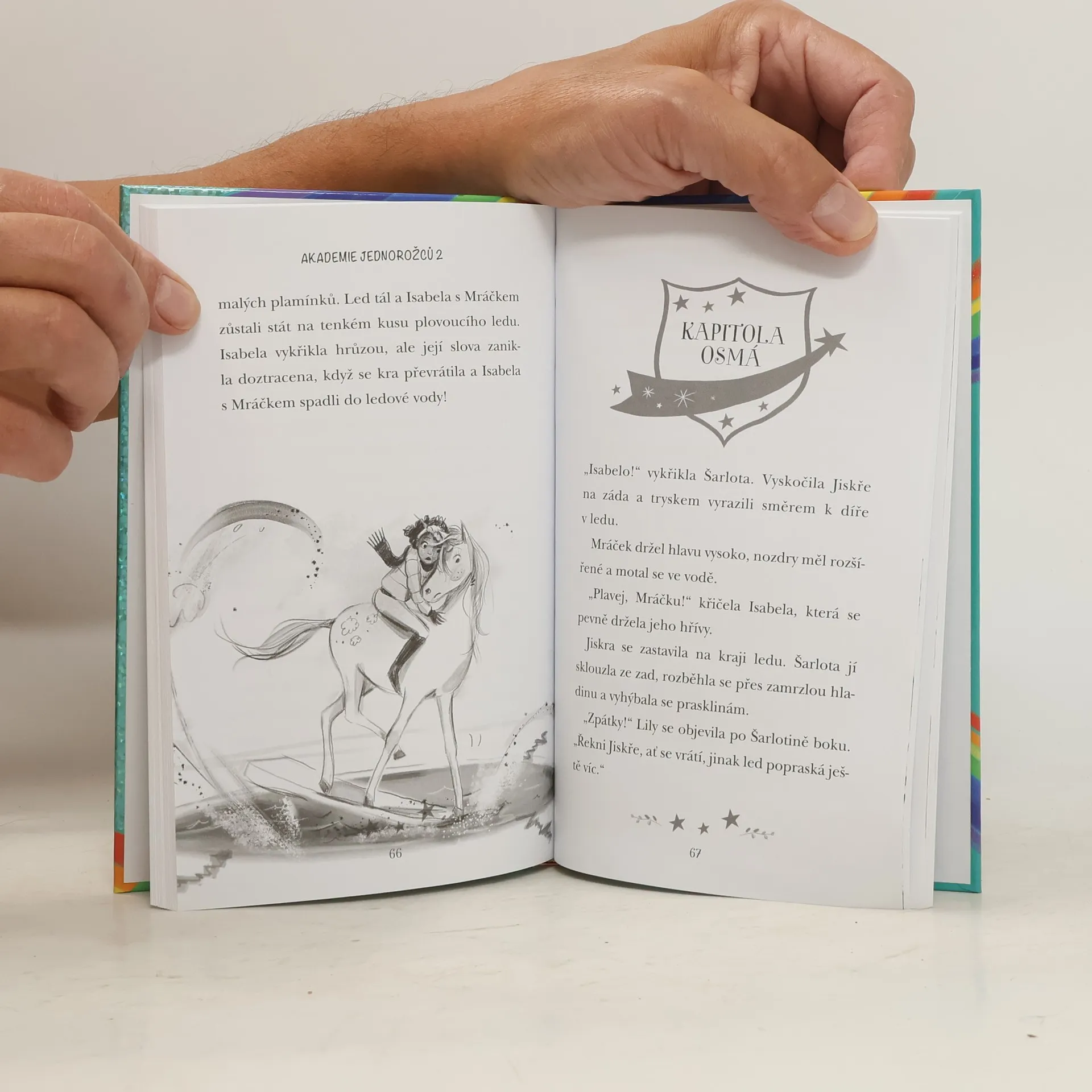 Šarlota a její jednorožec Jiskra jsou plní elánu a nezkazí žádnou legraci. Když ale náhle udeří velké mrazy a kouzelné Třpytivé jezero začíná zamrzat, jejich společný pobyt na Akademii jednorožců je ohrožen! A tak se rozhodnou, že přijdou záhadě zamrzlého jezera na kloub a společně s kamarádkou Lily a jejím jednorožcem Mráčkem se vydávají na dobrodružnou honbu za diamantem, který by jejich jezero měl zachránit. Podaří se jim ho získat? A objeví Jiskra svou kouzelnou schopnost?