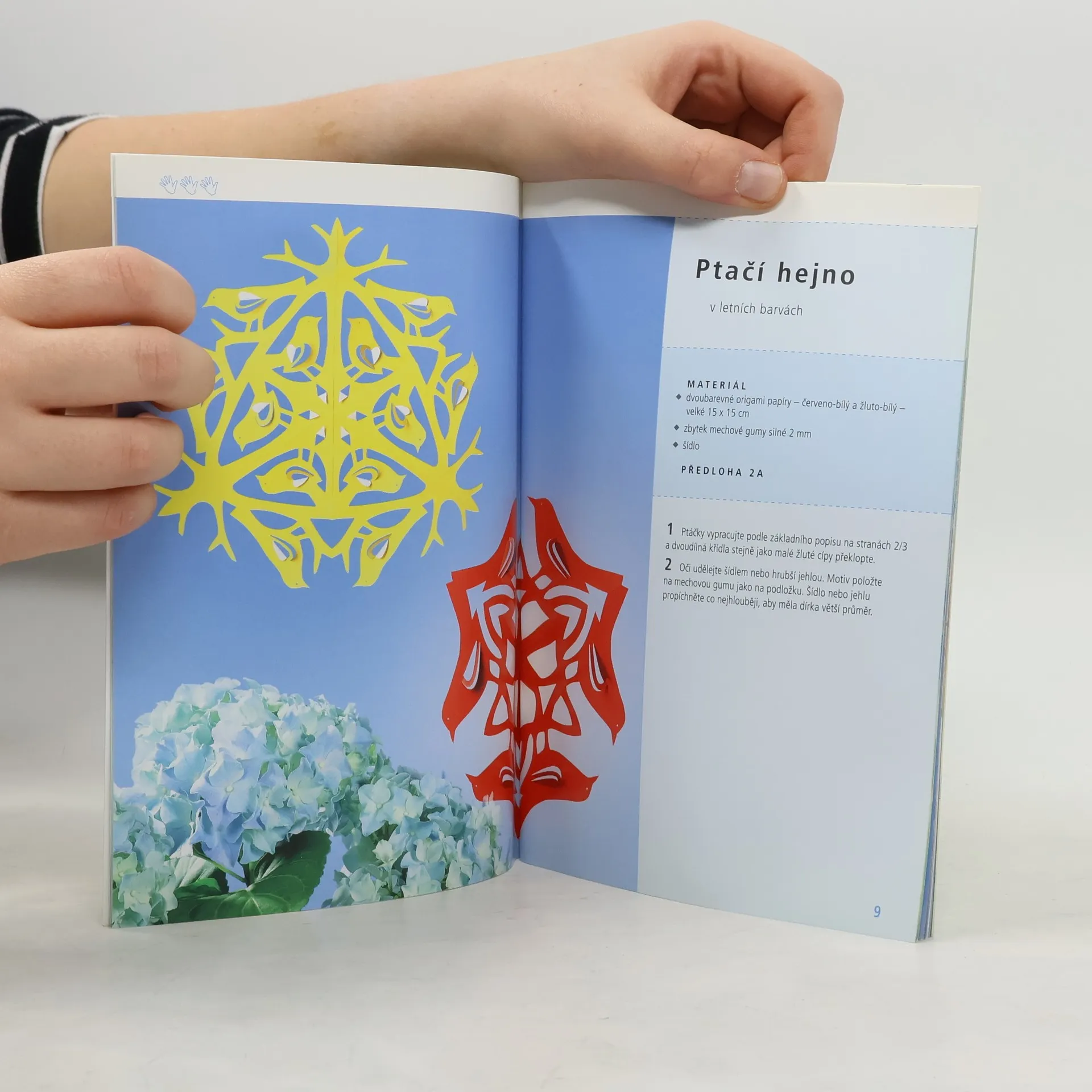 Umění japonského skládání a stříhání v mnoha různých stylech: od ornamentů přes květinové motivy až po motivy zajíčků, motýlků nebo tučňáků.