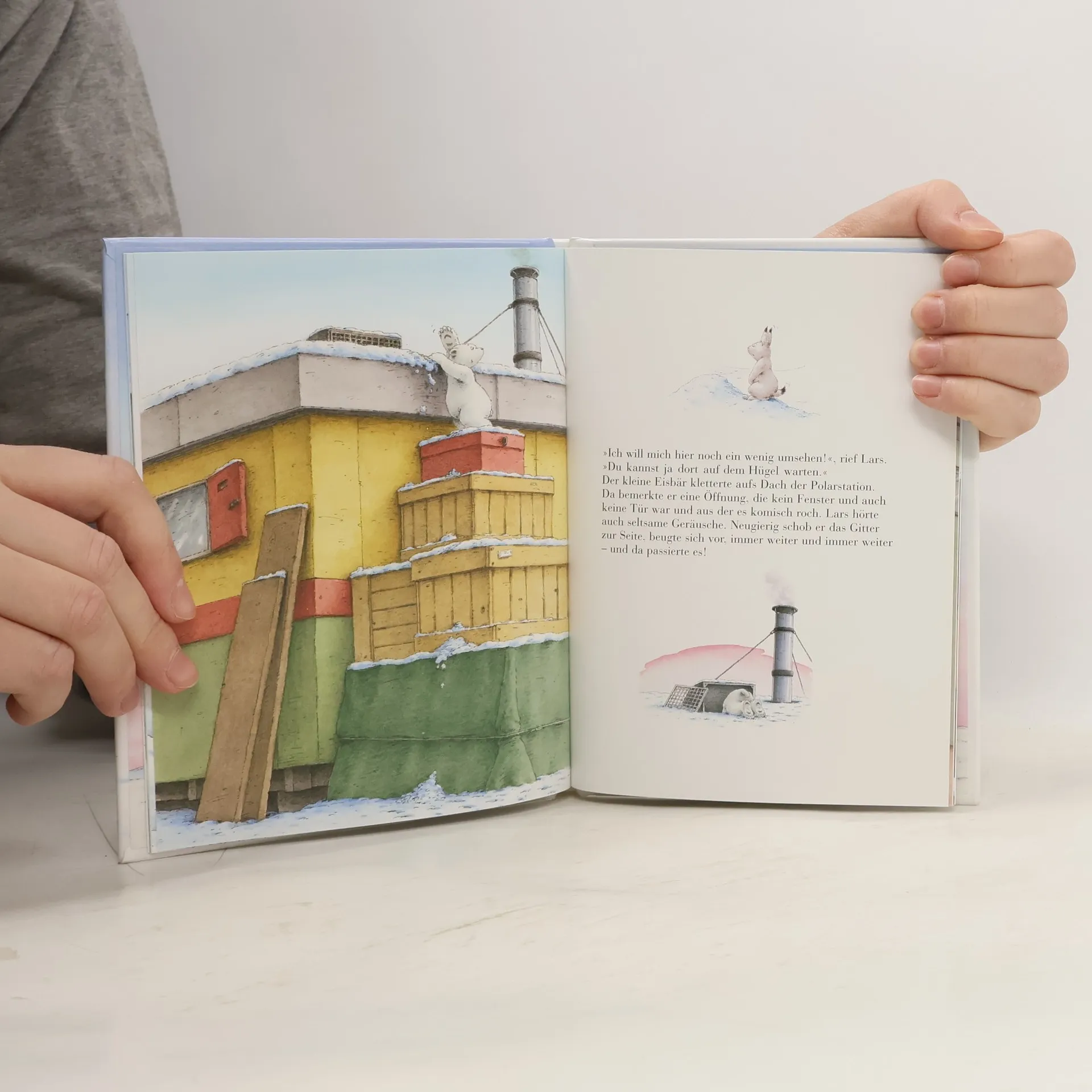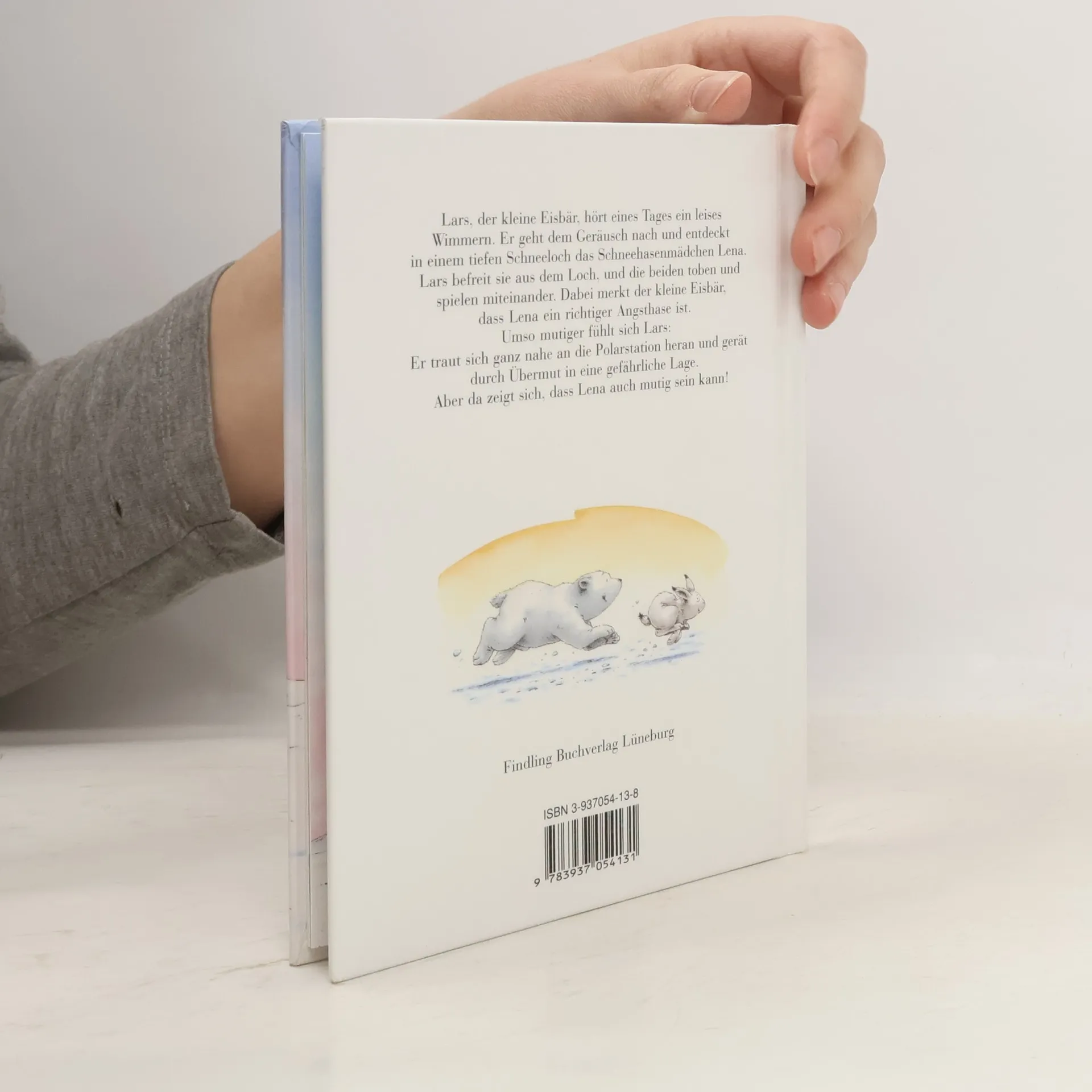 Lars, der kleine Eisbär, hört eines Tages ein leises Wimmern. Er geht dem Geräusch nach und entdeckt in einem tiefen Schneeloch das Schneehasenmädchen Lena. Lars befreit sie aus dem Loch, und die beiden toben und spielen miteinander. Dabei merkt der kleine Eisbär, dass Lena ein richtiger Angsthase ist. Umso mutiger fühlt sich Lars: Er traut sich ganz nahe an die Polarstation heran und gerät durch Übermut in eine gefährliche Lage. Aber da zeigt sich, dass Lena auch mutig sein kann!