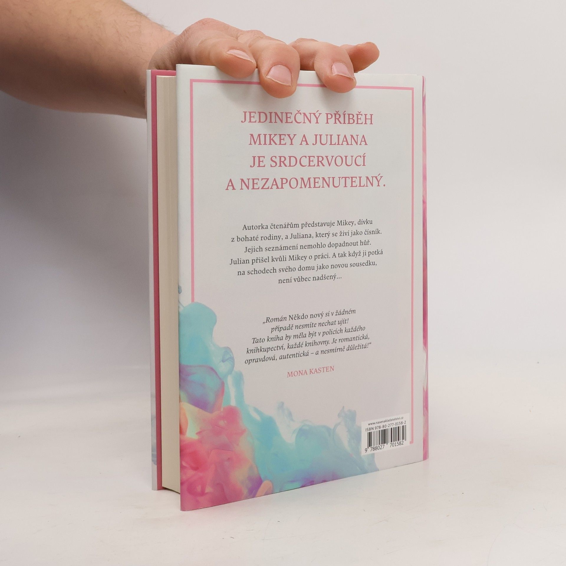 Jedinečný milostný příběh Mickey a Juliana je srdcervoucí a nezapomenutelný. Když mladá a bohatá Mickey potkává na schodech svého nového souseda, nemůže uvěřit svým očím. Je to Julian, číšník, který kvůli ní přišel o několik týdnů dříve o práci. Mickey se kvůli tomu stále cítí hrozně, zejména proto, že se k ní Julian chová velmi odmítavě a nedává jí šanci se omluvit a napravit to. Mickey je tím zvláštním charismatickým mužem a jeho chováním doslova fascinovaná. Snaží se proniknout jeho tvrdou slupkou a lépe ho poznat. Přitom zjišťuje, že Julian si zcela záměrně udržuje odstup nejen od ní, ale i od všech ostatních lidí. Julian má totiž tajemství. Tajemství, které by mohlo navždy změnit způsob, jakým ho Mickey vidí... „Román Someone New si v žádném případě nesmíte nechat ujít! Tato kniha by měla být v policích každého knihkupectví, každé knihovny. Je romantická, opravdová, autentická – a nesmírně důležitá!“