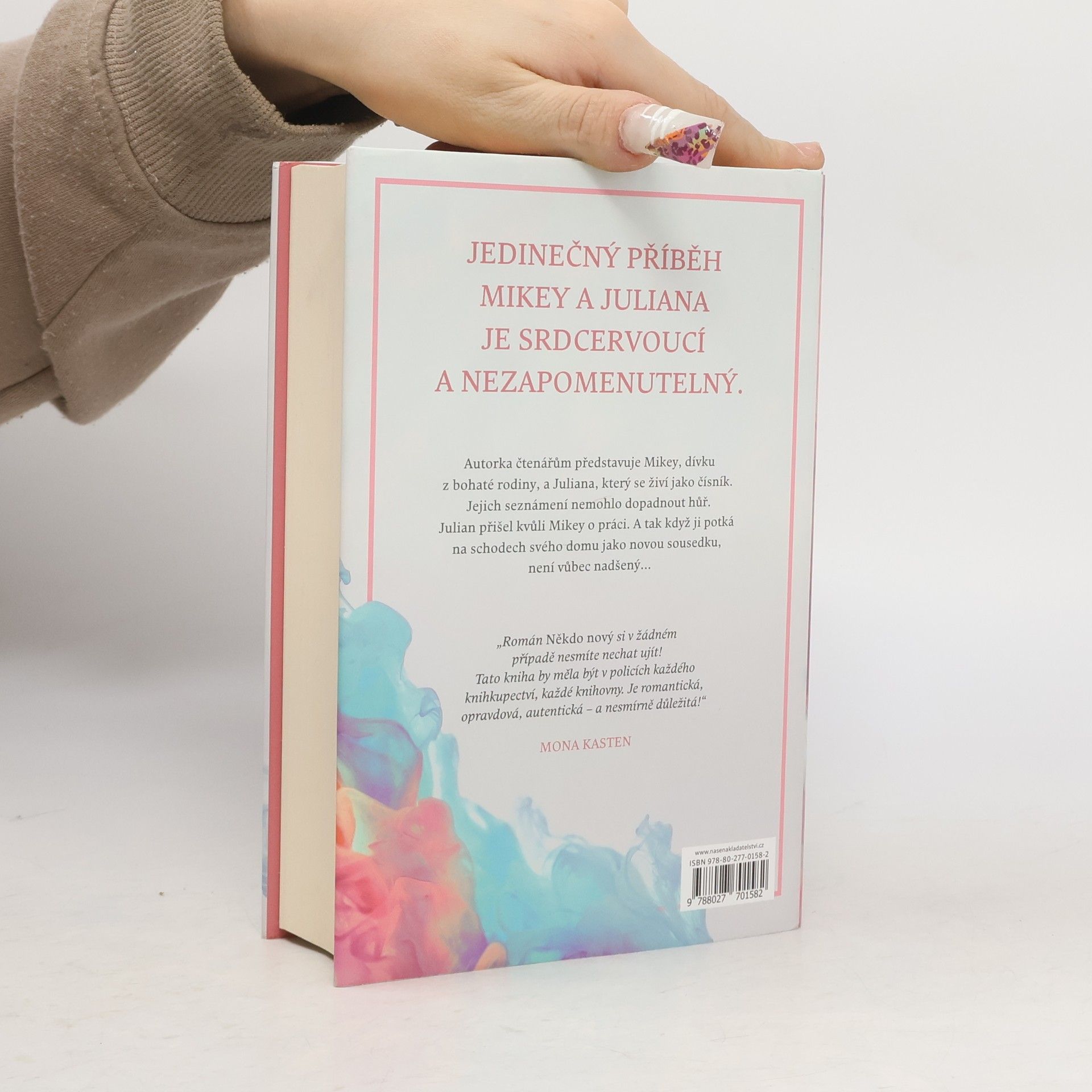 Jedinečný milostný příběh Mickey a Juliana je srdcervoucí a nezapomenutelný. Když mladá a bohatá Mickey potkává na schodech svého nového souseda, nemůže uvěřit svým očím. Je to Julian, číšník, který kvůli ní přišel o několik týdnů dříve o práci. Mickey se kvůli tomu stále cítí hrozně, zejména proto, že se k ní Julian chová velmi odmítavě a nedává jí šanci se omluvit a napravit to. Mickey je tím zvláštním charismatickým mužem a jeho chováním doslova fascinovaná. Snaží se proniknout jeho tvrdou slupkou a lépe ho poznat. Přitom zjišťuje, že Julian si zcela záměrně udržuje odstup nejen od ní, ale i od všech ostatních lidí. Julian má totiž tajemství. Tajemství, které by mohlo navždy změnit způsob, jakým ho Mickey vidí... „Román Someone New si v žádném případě nesmíte nechat ujít! Tato kniha by měla být v policích každého knihkupectví, každé knihovny. Je romantická, opravdová, autentická – a nesmírně důležitá!“