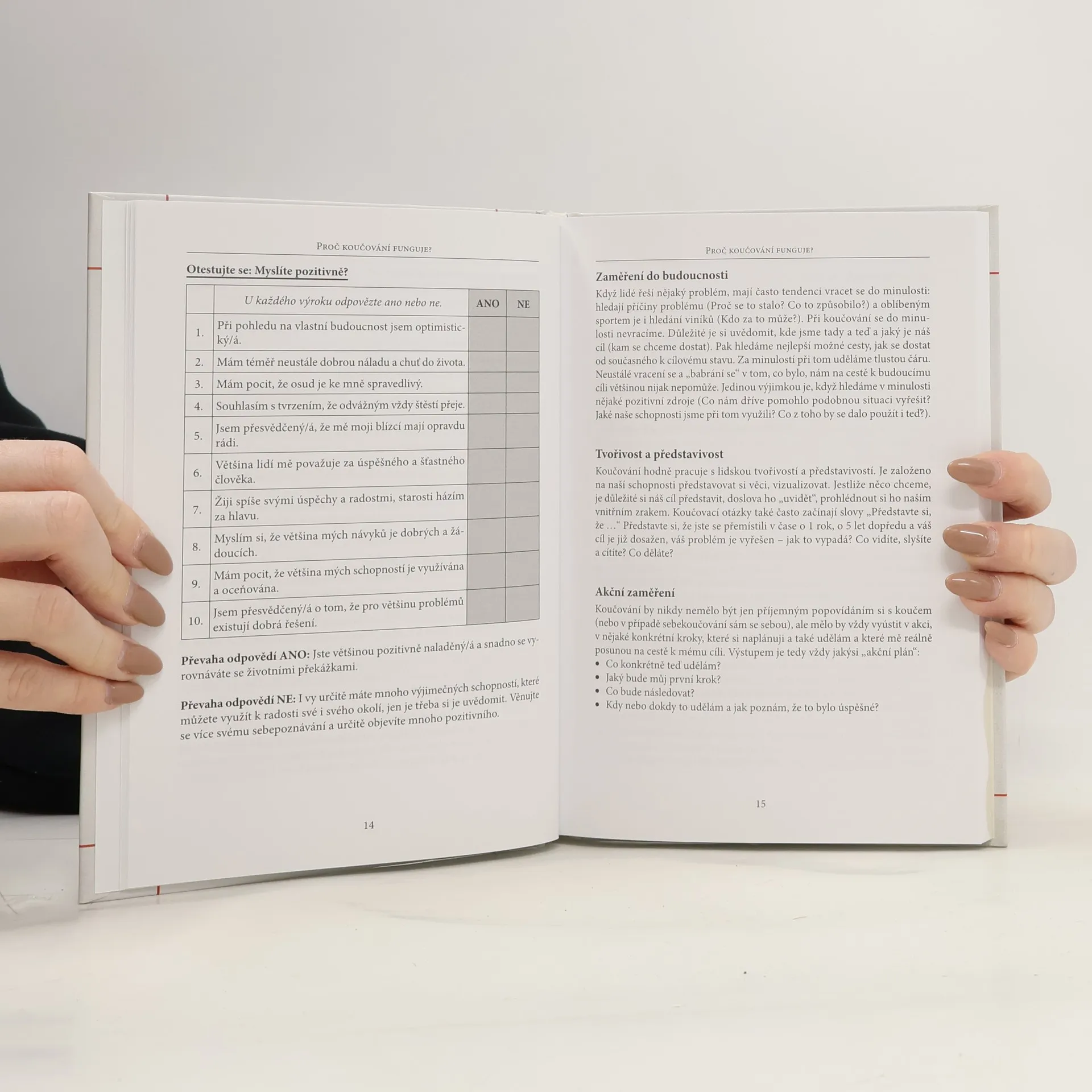 Co je to koučování? Stručně řečeno, je to soubor nástrojů, technik a způsobů, pomocí kterých člověk řídí svůj život a dosahuje svých cílů. Člověk, který se seznámí se základními technikami a principy koučování a přijme je za své, pak může velmi účinně koučovat sám sebe. Autorka - psycholožka a profesionální kouč - přibližuje pojem koučování široké vrstvě čtenářů a ukazuje, jak ho může využívat každý člověk ve svém každodenním životě. Po přečtení této knihy zjistíte, že koučovat sám sebe je vlastně snadné a také to může být docela zábavné. Naučíte se klást sami sobě ty správné otázky a budete možná někdy překvapení, co všechno se o sobě dozvíte.