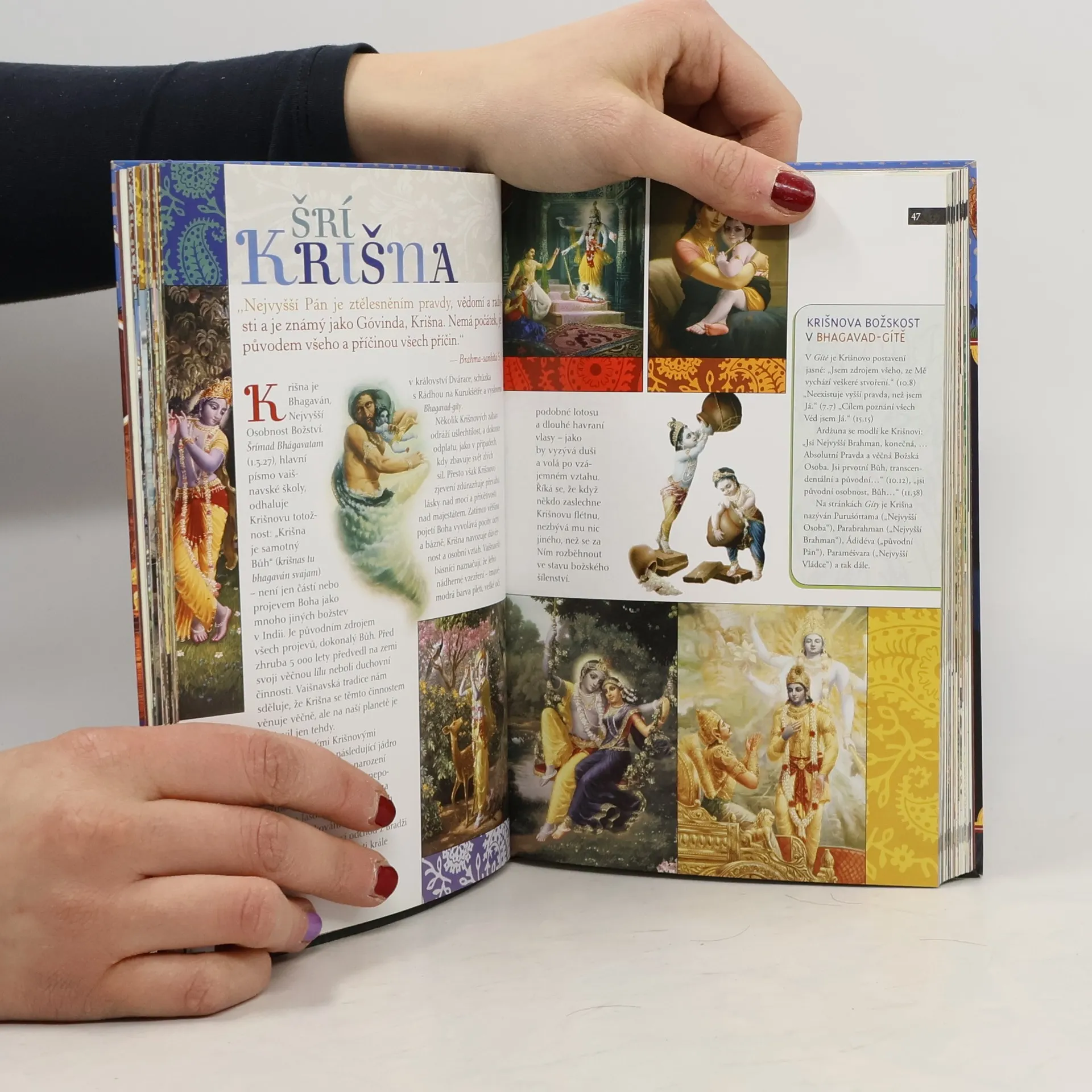 V několika snadno čitelných a srozumitelných kapitolkách se dozvíte o tématech jako jsou Védy - starobylé texty Indie, Krišna a Jeho inkarnace, Rádhá a Gópie, Ajurvéda, védská astrologie, význam slabiky "ÓM", síla manter, 33 miliónů polobohů, karma a reinkarnace, umění: poezie, drama, tanec, hudba, tajemství času a prostoru, svaté chrámy a posvátná místa, mystická jóga a meditace, málo známá totožnost Pána Buddhy a další.