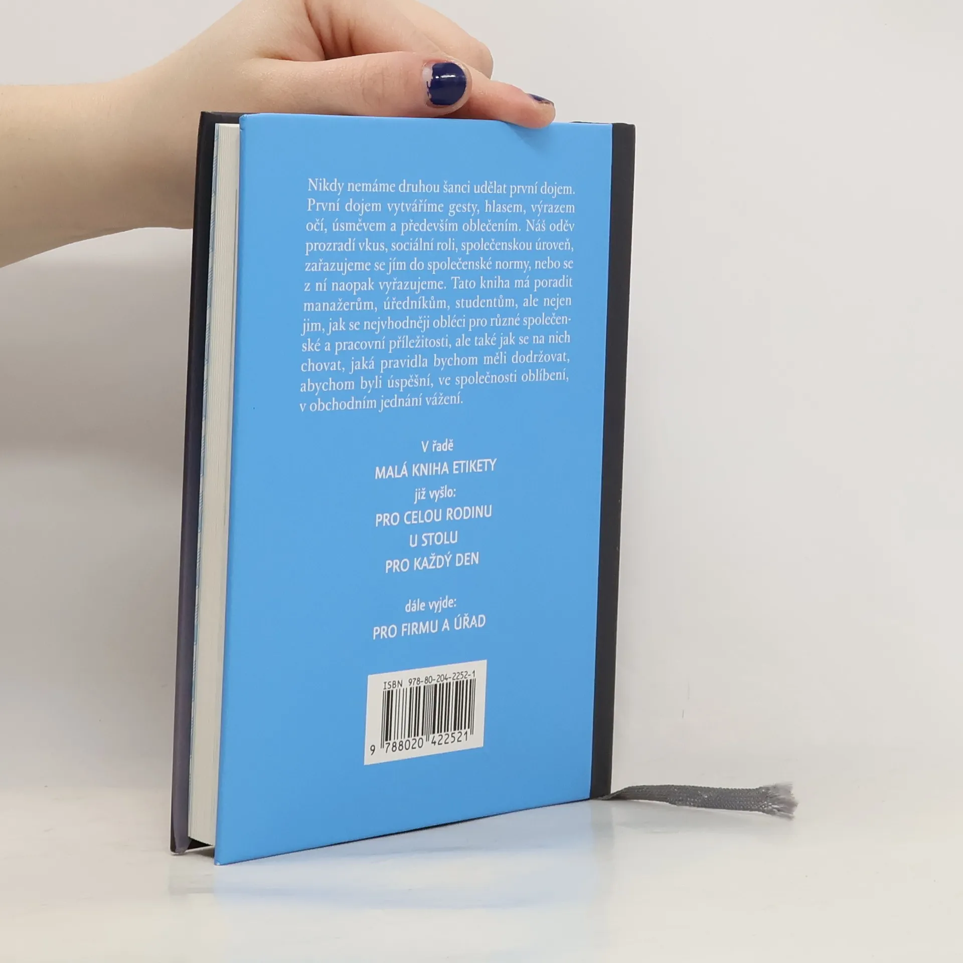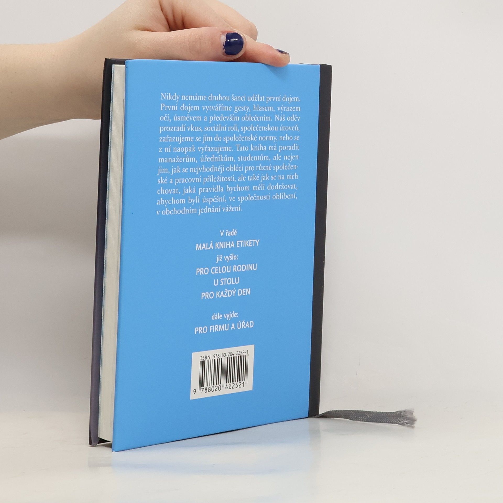 Manažeři vědí, že předpokladem profesního úspěchu jsou nejen znalosti a zkušenosti v daném oboru, ale také umění zvládat společenské situace. Právě pro ně je určen další díl řady „Malá kniha etikety“. Nabídne jim podrobná pravidla vhodného oblečení a chování pro pracovní a společenské příležitosti, vysvětlí, jak správně psát a číst pozvánky, čím se řídíme při oslovování druhých nebo jak správně předávat vizitky. Určitě využijí i pravidla etikety pro nové způsoby komunikace – e-maily nebo mobilní telefony a rady, jak se chovat na jachtě, na dostizích nebo na golfu.