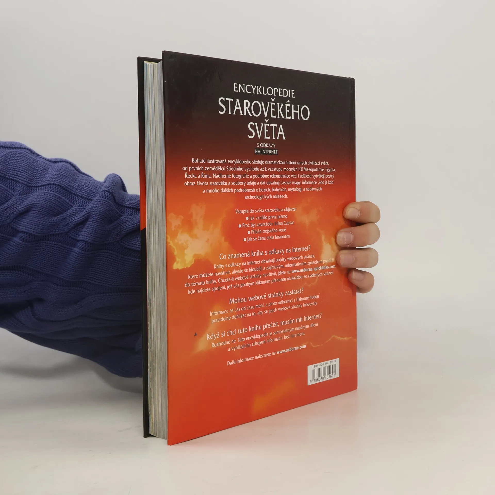 Bohatě ilustrovaná encyklopedie sleduje dramatickou historii ranných civilizací světa, od prvních zemědělců Středního východu až k vzestupu mocných říší Mezopotámie, Egypta, Řecka a Říma. Nádherné fotografie a podrobné rekonstrukce věcí a událostí vytvářejí pestrý obraz života starověku a soubory údajů a dat obsahují časové mapy, informace "kdo je kdo" a mnoho dalších podrobností o bozích, bohyních, mytologii a nedávných archeologických nálezech.