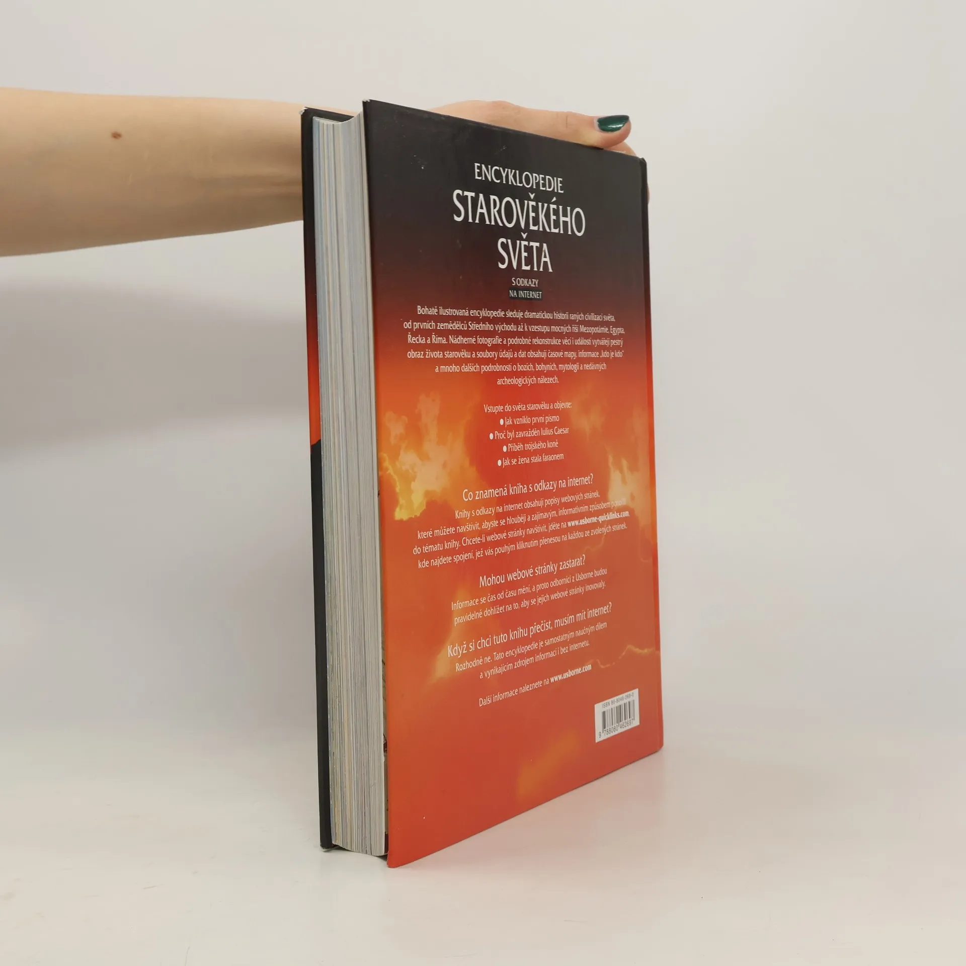 Bohatě ilustrovaná encyklopedie sleduje dramatickou historii ranných civilizací světa, od prvních zemědělců Středního východu až k vzestupu mocných říší Mezopotámie, Egypta, Řecka a Říma. Nádherné fotografie a podrobné rekonstrukce věcí a událostí vytvářejí pestrý obraz života starověku a soubory údajů a dat obsahují časové mapy, informace "kdo je kdo" a mnoho dalších podrobností o bozích, bohyních, mytologii a nedávných archeologických nálezech.