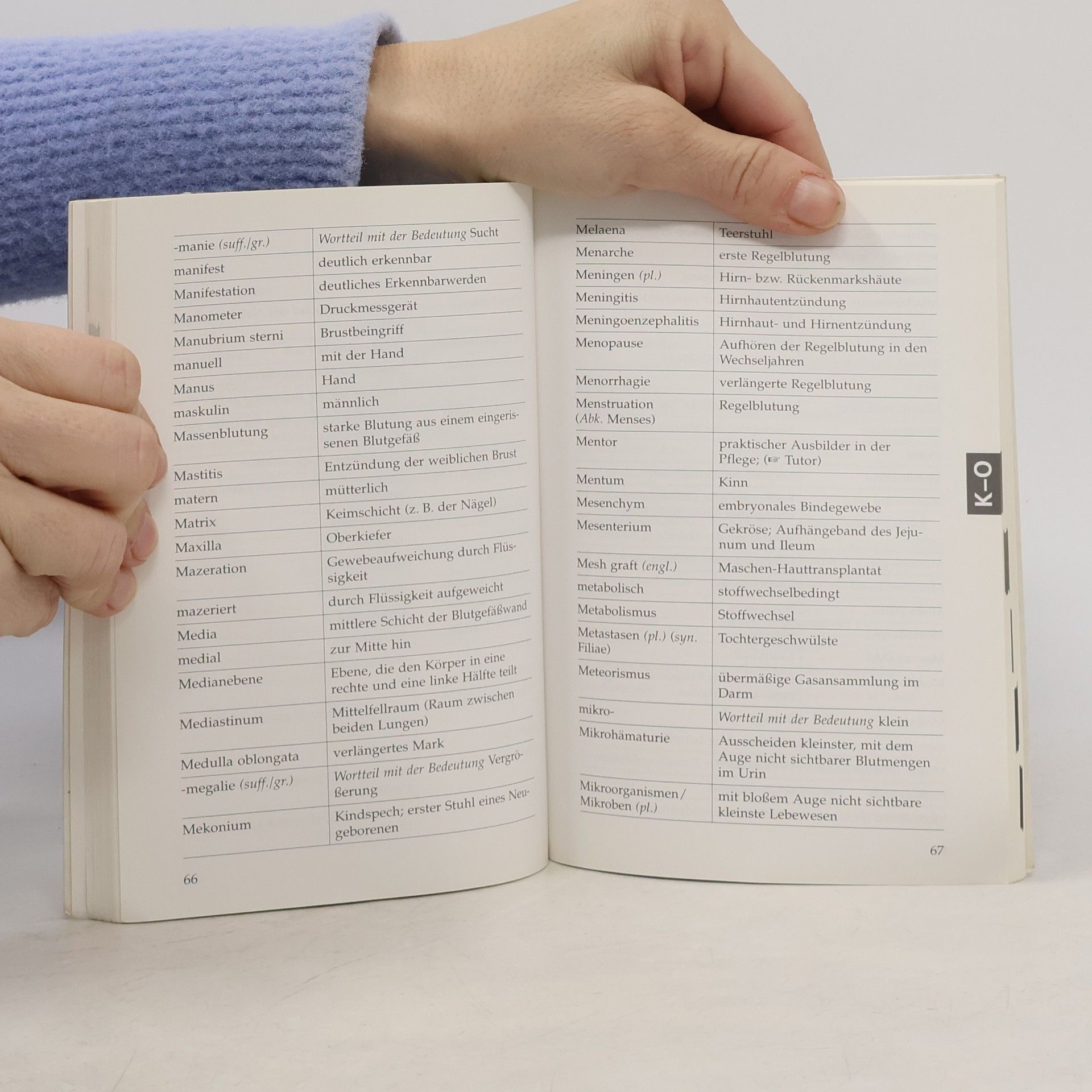 Das Verständnis und der sichere Umgang mit der medizinischen Fachsprache gehören zu den Grundvoraussetzungen für Pflegeberufe. Dieses Buch bietet in alphabetischer Reihenfolge leicht verständliche Übersetzungen und Erklärungen geläufiger medizinisch-biologischer Fachbegriffe, Abkürzungen, Zeichen und Symbole sowie eine Zusammenstellung der wichtigsten Labor-Normwerte. Entsprechend den Entwicklungen in den Pflegeberufen wird das Arbeitsbuch regelmäßig aktualisiert - auch die 11. Auflage wurde um aktuelle Begriffe ergänzt. Da sich das Buch gleichermaßen zum traditionellen Vokabellernen als auch zum raschen Nachschlagen im Arbeitsalltag eignet, ist es der ideale Begleiter für Ausbildung und Praxis.