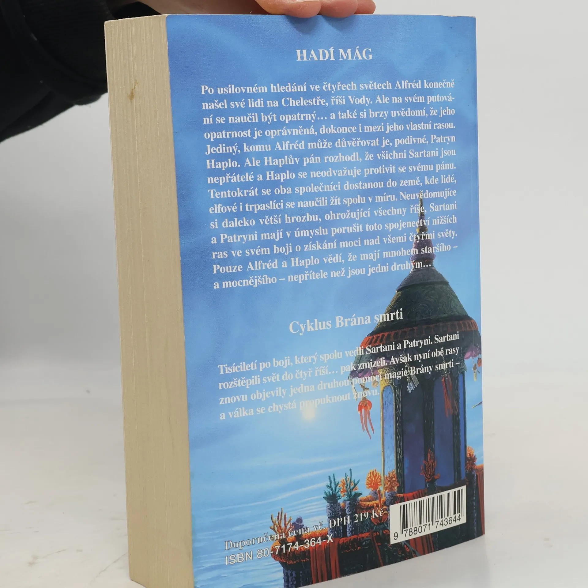 série: Brána smrti díl v sérii: 4 Po usilovném hledání ve čtyřech světech Alfréd konečně našel své lidi na Chelestře, říši Vody. Ale na svém putování se naučil být opatrný… a také si brzy uvědomí, že jeho opatrnost je oprávněná, dokonce i mezi jeho vlastní rasou. Jediný, komu Alfréd může důvěřovat je Patryn Haplo. Ale Haplův pán rozhodl, že všichni Sartani jsou nepřátelé a Haplo se neodvažuje protivit se svému pánu. Tentokrát se oba společníci dostanou do země, kde se lidé, elfové i trpaslíci naučili žít spolu v míru. Neuvědomujíce si daleko větší hrozbu, ohrožující všechny říše, Sartani a Patryni mají v úmyslu porušit toto spojenectví nižších ras ve svém boji o získání moci nad všemi čtyřmi světy. Pouze Alfréd a Haplo vědí, že mají mnohem staršího – a mocnějšího – nepřítele než jsou jedni druhým…