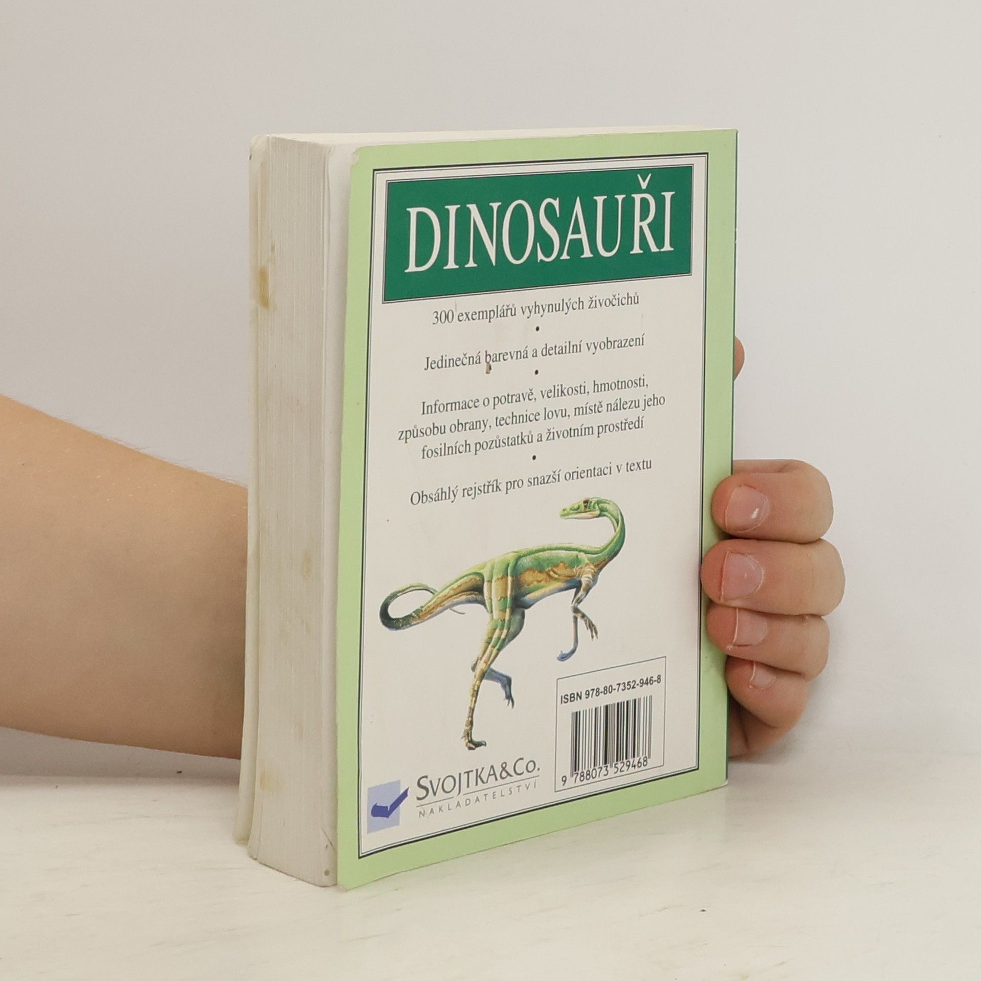 300 exemplářů vyhynulých živočichů. Jedinečná barevná a detailní vyobrazení. Informace o potravě, velikosti, hmotnosti, způsobu obrany, technice lovu, místě nálezů jeho fosilních pozůstatků a životním prostředí. Obsáhlý rejstřík pro snazší orientaci v textu.
