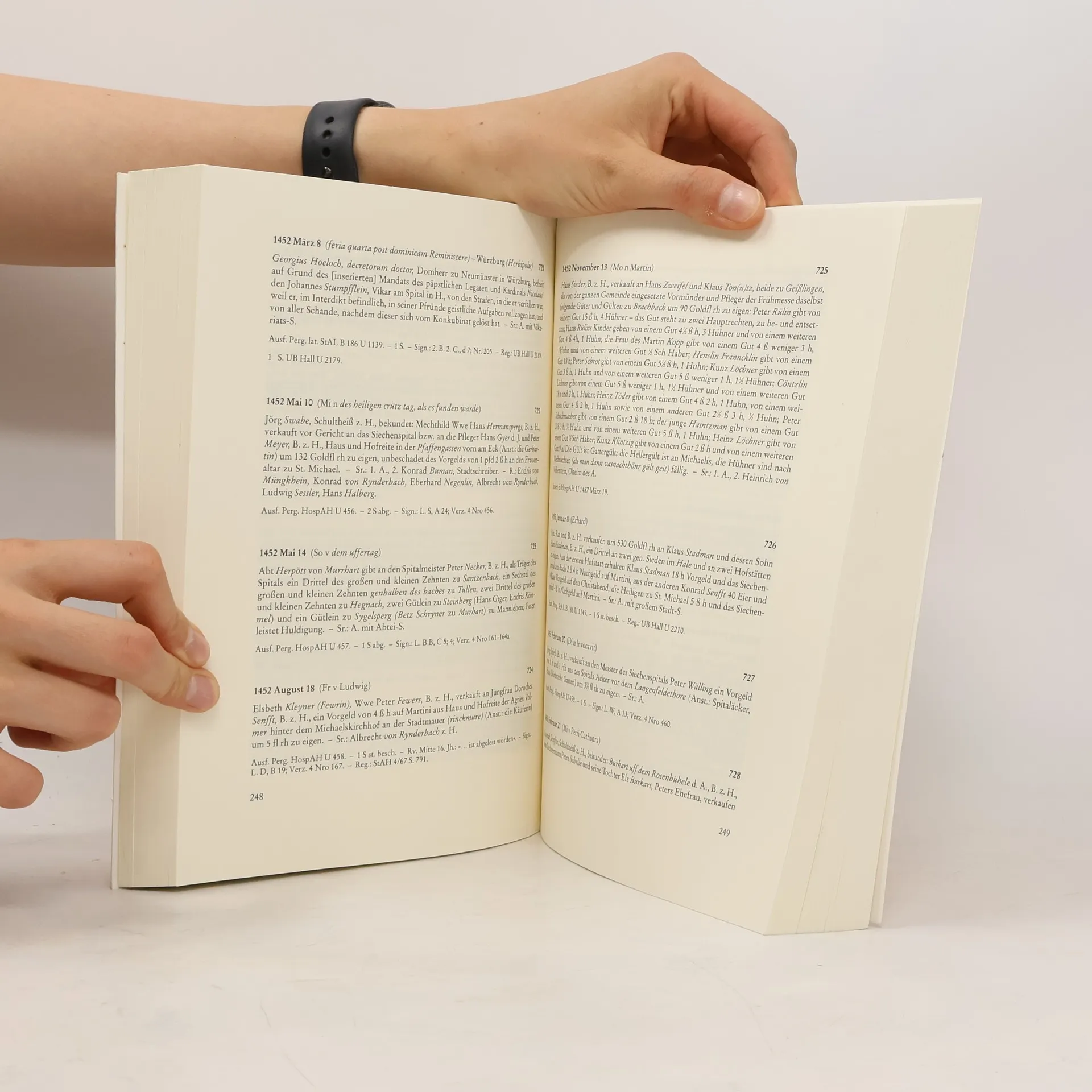 Das Archiv des Hospitals zum Heiligen Geist in Schwäbisch Hall ist ein Depositum im Stadtarchiv Schwäbisch Hall. Es dokumentiert nicht nur den umfangreichen Besitz der Einrichtung, sondern auch deren innere Geschichte als Sozialstation (Waisenhaus, Krankenhaus, Alten- und Pflegeheim). Die Hälfte der ca. 2000 Haller Hospitalurkunden, die hier und in anderen Archiven überliefert sind, wird im vorliegenden Band veröffentlicht. Die Regesten bringen eine Fülle von Nachrichten zur Verwaltung und Gestaltung des Hospitals und darüber hinaus zur lokalen und regionalen Wirtschafts-, Sozial- und Familiengeschichte.