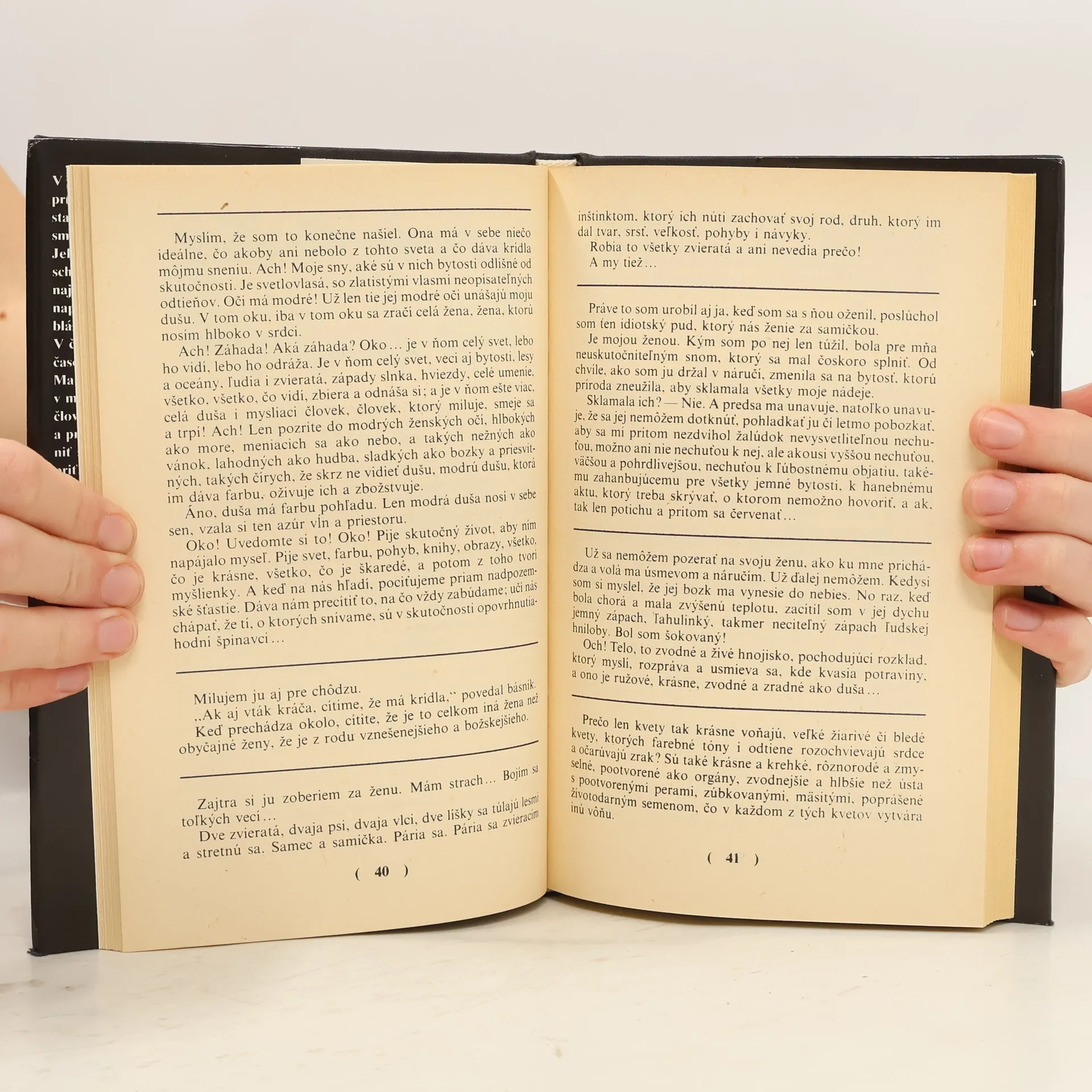 Fantastické povídky, v nichž autor vystihuje vnitřní konflikty naplněné dramatičností, tajemstvím nebo bláznivými výstřednostmi. Poviedky: Uspávačka, Portrét, Noc, Pani Hermetová, Horla, Prípad jednéhorozvodu, Neznáma, Tik, Blázon ?, Vlasy, Ruka, On ?, Matka netvorov, Zjavenie, Pri mŕtvom, Vianočná poviedka, Vlk, Strach, Sny, Magnetizmus, Na vode, Doktor Héraclius Gloss. Prvé vydanie.