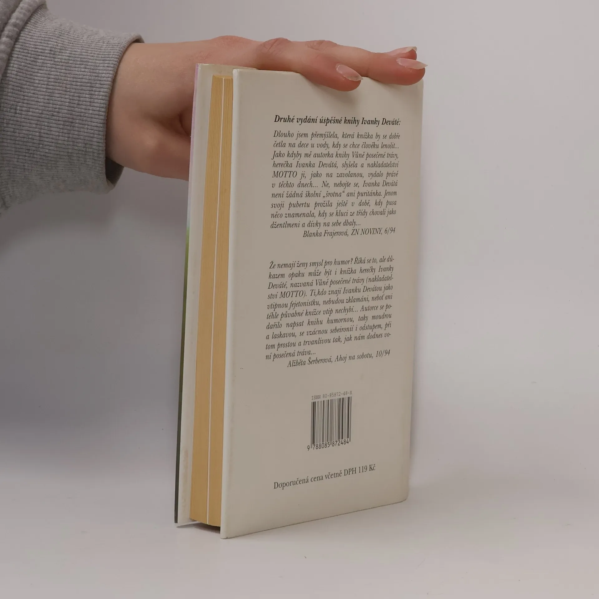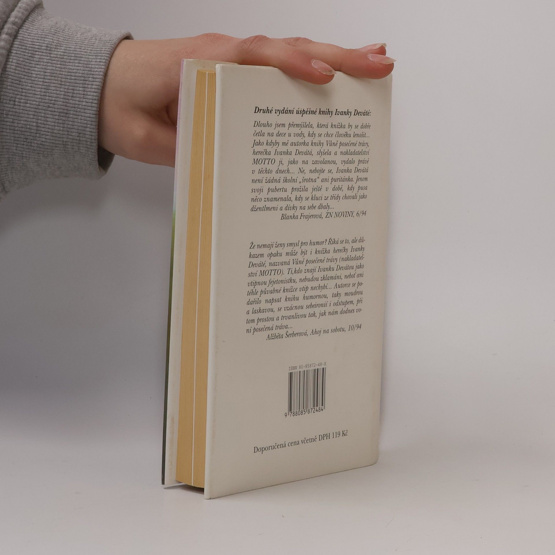 Znovu vydaná sbírka fejetonů od populární herečky Ivanky Deváté dokazuje, že ten, kdo říká, že ženy nemají smysl pro humor, se hluboce mýlí. Protože právě této půvabné knížce vtip rozhodně nechybí. Autorce se podařilo napsat knihu nejen humornou, ale také moudrou, laskavou a obecně platnou tak, jak nám dodnes voní čerstvě posečená tráva.
