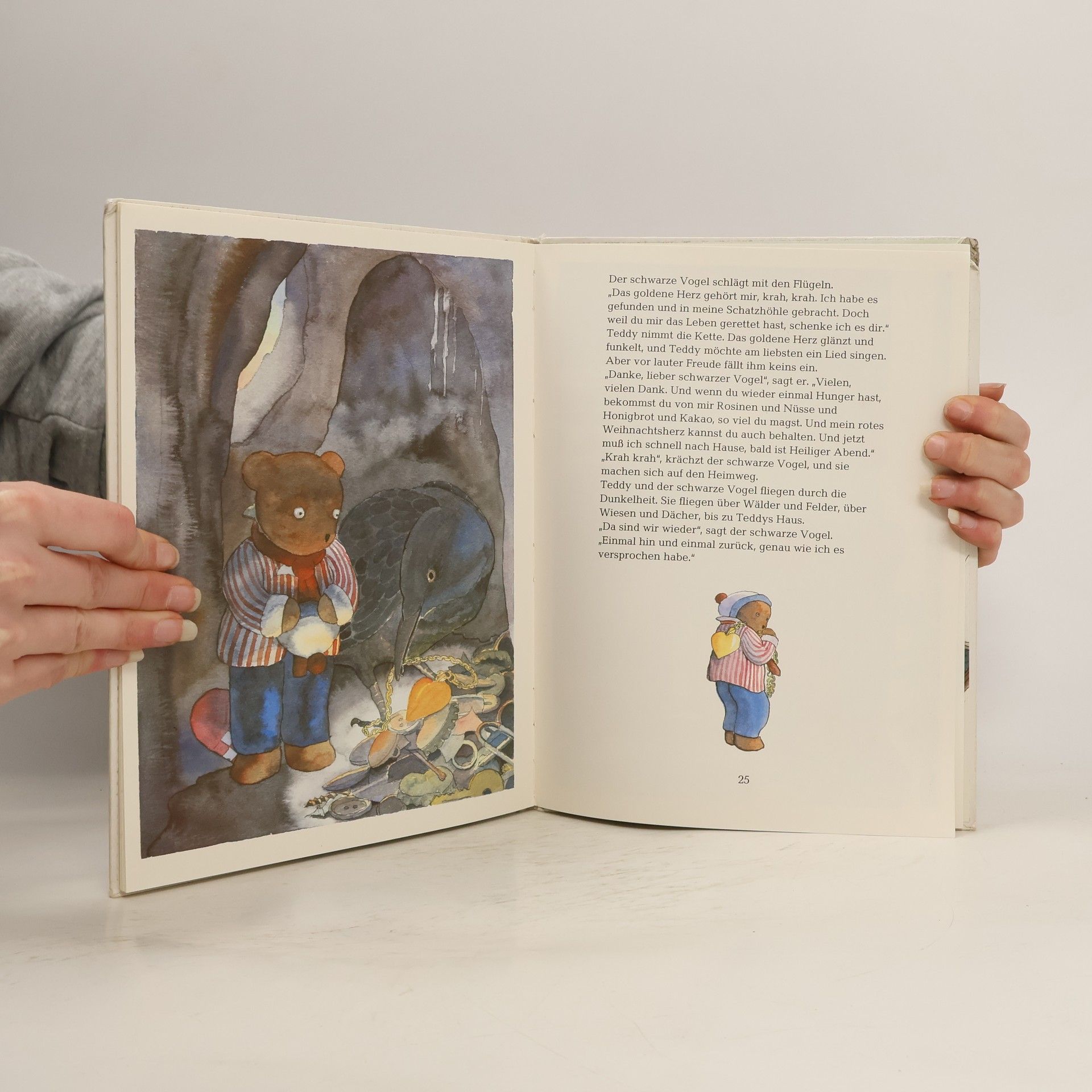 Marie ist traurig, obwohl sie auf den Heiligen Abend wartet: sie hat ihre goldene Kette mit dem goldenen Anhänger verloren. Ob Teddy und der grosse schwarze Vogel den Schmuck rechtzeitig bis zur Bescherung finden werden?