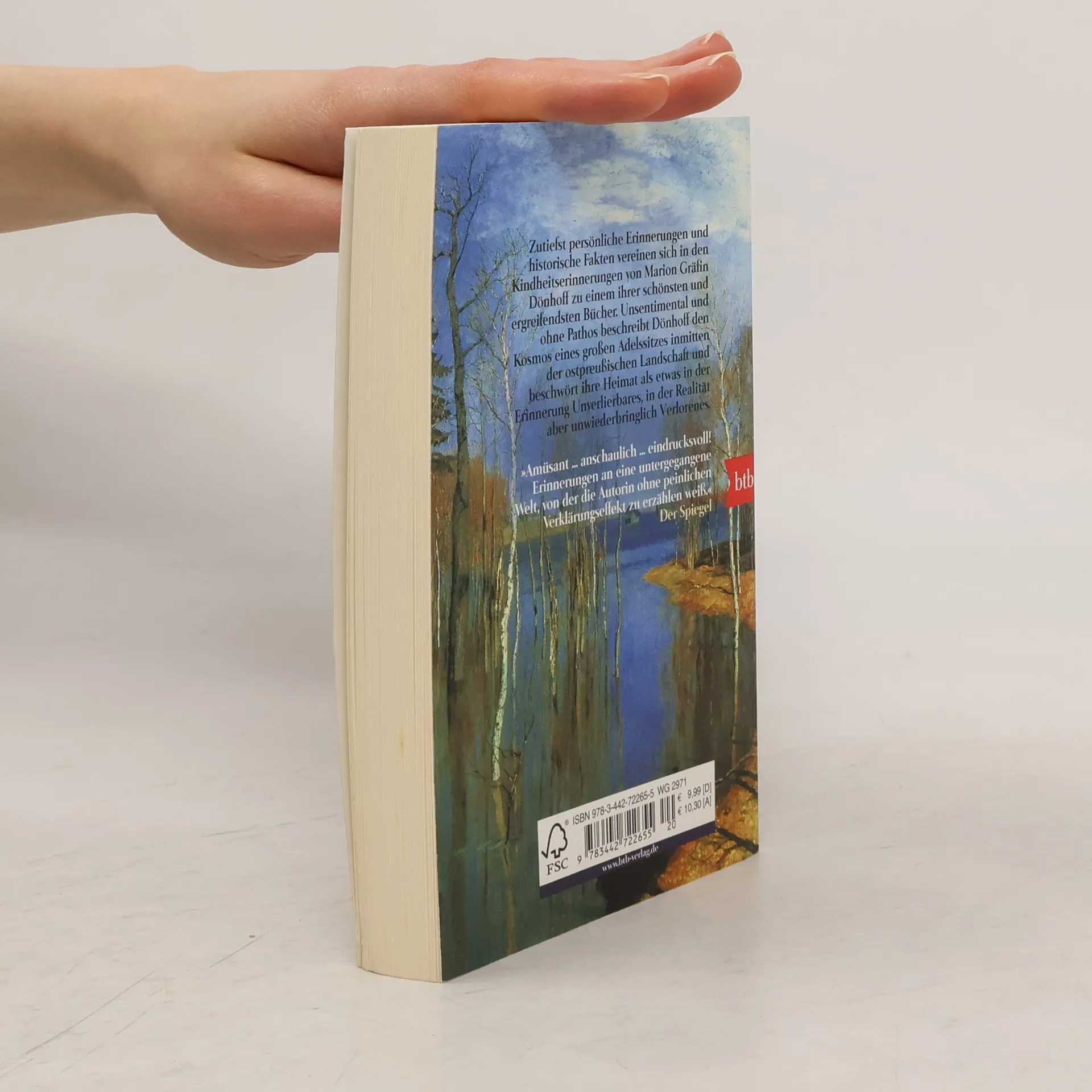 Dieser Band mit Erinnerungen an Kindheit und Jugendzeit, an Elternhaus, Freunde und Heimat zählt zu einem der schönsten und ergreifendsten Bücher von Marion Gräfin Dönhoff. Ausstattung: zahlreiche s/w-Fotografien