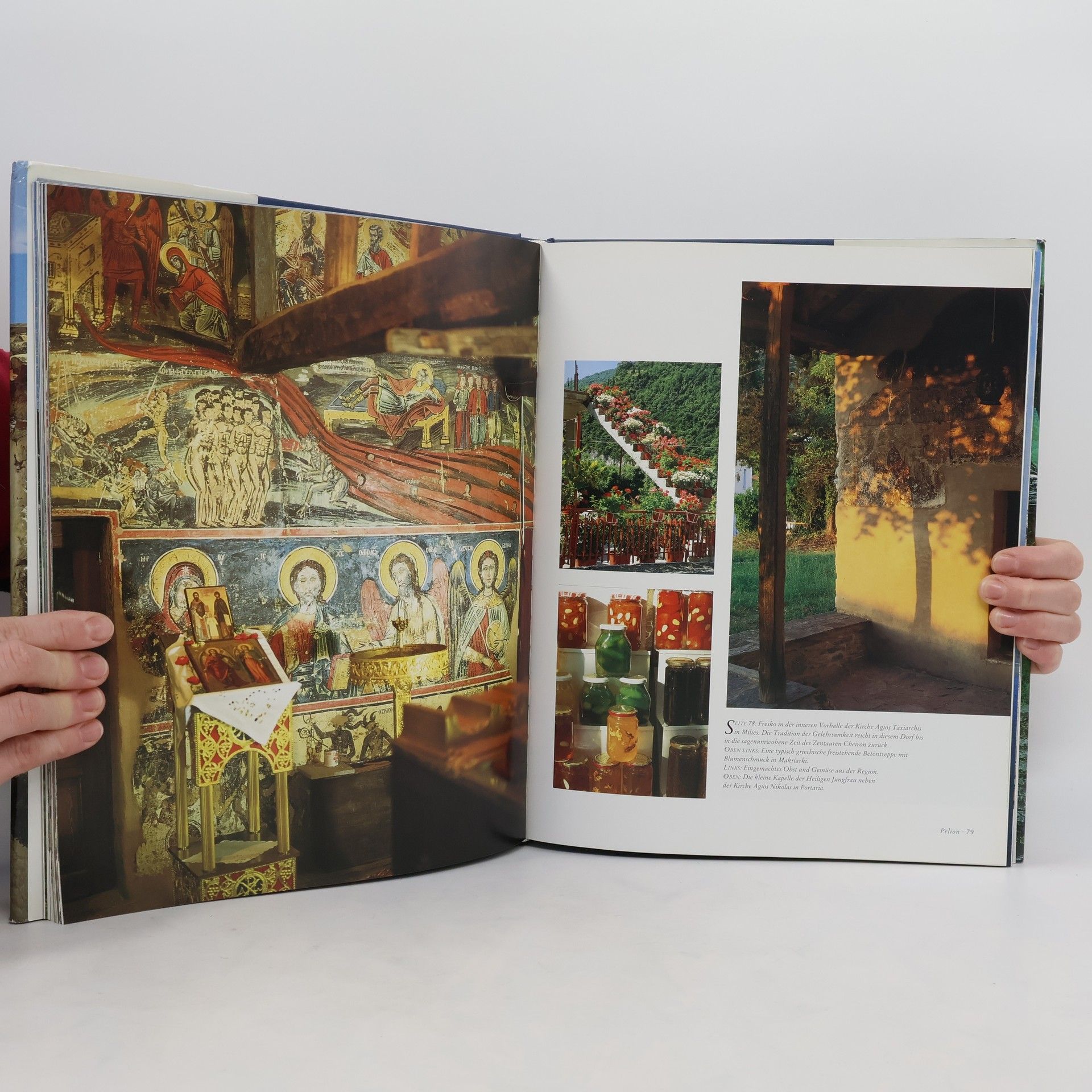 Von den Grün-, Terrakotta- und Ockertönen auf den Ionischen Inseln zum strahlenden Blau-Weiß der Ägäischen Inseln: griechische Dörfer bieten ein Bild unvergleichlicher Schönheit. Die Reise durch die Landschaften und kleinen Orte Griechenlands beginnt auf dem Peloponnes, in den Dörfern der Mani im Süden, deren charakteristische Wohntürme von einander bekriegenden Familien gebaut wurden. Die kleinen Orte in den Bergen des griechischen Festlands verraten mit ihren Blumen, kleinen Bächen, Häusern mit Steinmauern und Holzbalkons türkischen Einfluss, während viele Dörfer der Ionischen Inseln mit ihren hohen Kirchtürmen, Loggien und Arkaden ein Vermächtnis der Venezianer darstellen. Andere Inseln bieten wieder andere Freuden, etwa uralte Tempel und Steinpfade, schattige Innenhöfe und Sandbuchten. Die schönsten Dörfer Griechenlands bietet ein eindrucksvolles Bild dörflicher Kultur, die anderen Ländern Europas zum großen Teil verloren gegangen ist.