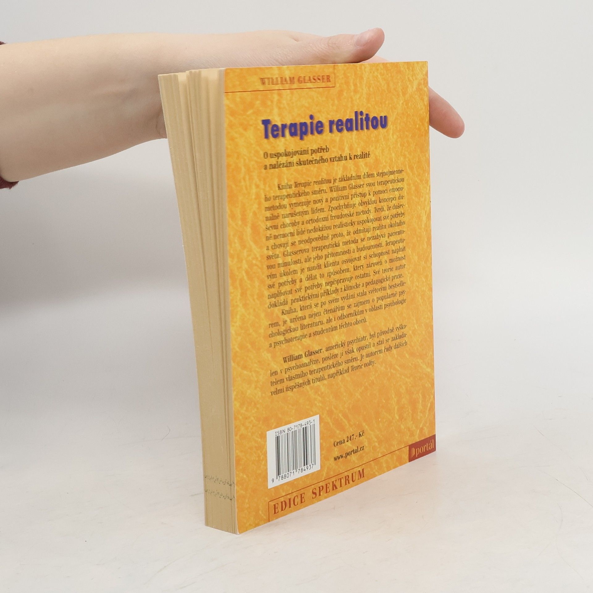 Kniha Terapie realitou je základním dílem stejnojmenného terapeutického směru. William Glasser svou terapeutickou metodou vymezuje nový a pozitivní přístup k pomoci emociálně narušeným lidem. Zpochybňuje obvyklou koncepci duševní choroby a ortodoxní freudovské metody. Tvrdí, že duševně nemocní lidé nedokážou realisticky uspokojovat své potřeby a chovají se neodpovědně proto, že odmítají realitu okolního světa. Glasserova terapeutická metoda se nezabývá pacientovou minulostí, ale jeho přítomností a budoucností. Terapeutovým úkolem je naučit klienta osvojovat si schopnost naplnit své potřeby a dělat to způsobem, který zároveň o možnost naplňovat své potřeby nepřipravuje ostatní. Své teorie autor dokládá praktickými příklady z klinické a pedagogické praxe. Kniha, která se po svém vydání stala světovým bestsellerem, je určena nejen čtenářům se zájmem o populární psychologickou literaturu, ale i odborníkům v oblasti psychologie a psychoterapie a studentům těchto oborů.