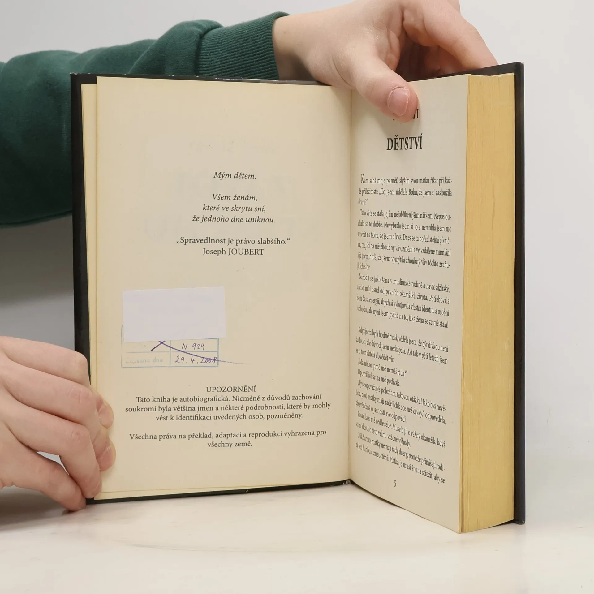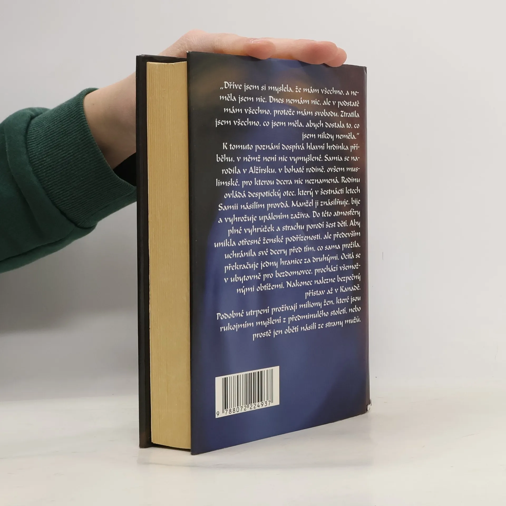 Dříve jsem si myslela, že mám všechno a neměla jsem nic. Dnes nemám nic, ale v podstatě mám všechno, protože mám svobodu. Ztratila jsem všechno, co jsem měla, abych dostala to, co jsem nikdy neměla. K tomuto poznání dospívá hlavní hrdinka příběhu, v němž není nic vymyšlené. Samia se narodila v Alžírsku, v bohaté rodině, ovšem muslimské, pro kterou dcera nic neznamená. Rodinu ovládá despotický otec, který v šestnácti letech Samii násilím provdá. Manžel ji znásilňuje, bije a vyhrožuje upálením zaživa. Do této atmosféry plné vyhrůžek a strachu porodí šest dětí. Aby unikla otřesné ženské podřízenosti, ale především uchránila své dcery před tím, co sama prožila, překračuje jedny hranice za druhými. Ocitá se v ubytovně pro bezdomovce, prochází všemožnými obtížemi. Nakonec nalezne bezpečný přístav až v Kanadě. Podobné utrpení prožívají milióny žen, které jsou rukojmím myšlení z předminulého století, nebo prostě jen obětí násilí ze strany mužů.